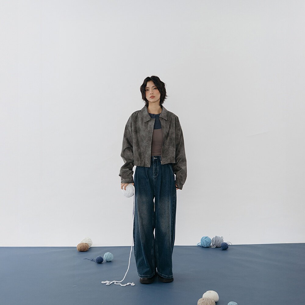 王家有鱼加绒小个子复古蓝直筒阔腿裤女2025年秋冬新款百搭牛仔裤