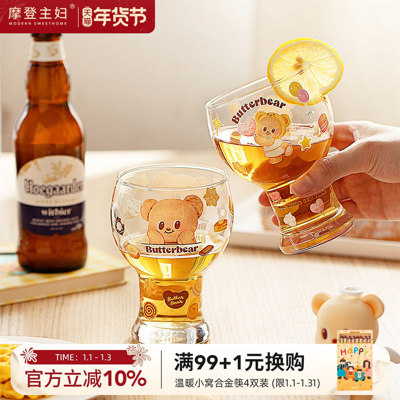 【摩登主妇&黄油小熊】啤酒杯玻璃杯家用喝水杯高颜值杯子果汁杯