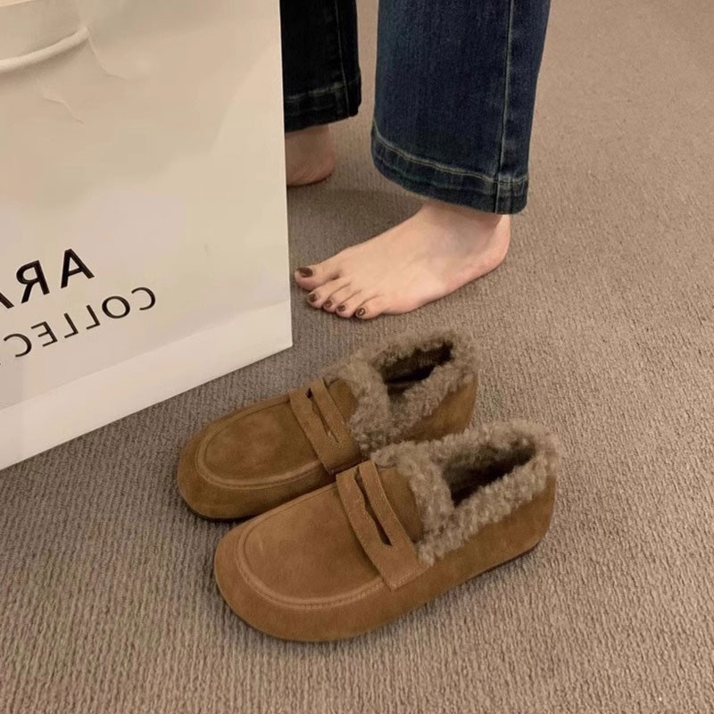 加绒勃肯鞋女加绒女鞋2025新款冬季乐福毛毛鞋豆豆鞋懒人博肯棉鞋