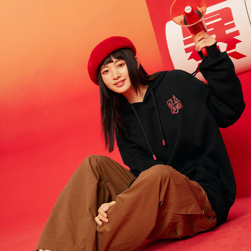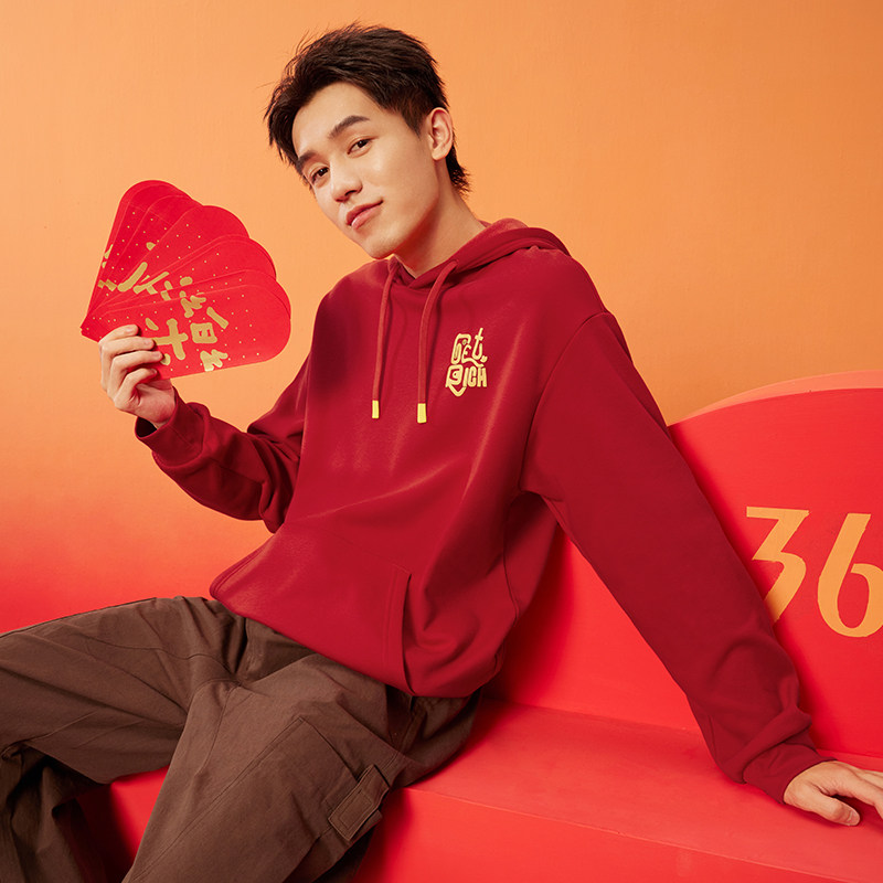 变有钱361蛇年红色运动卫衣男2025新年款连帽加绒新年款女子卫衣