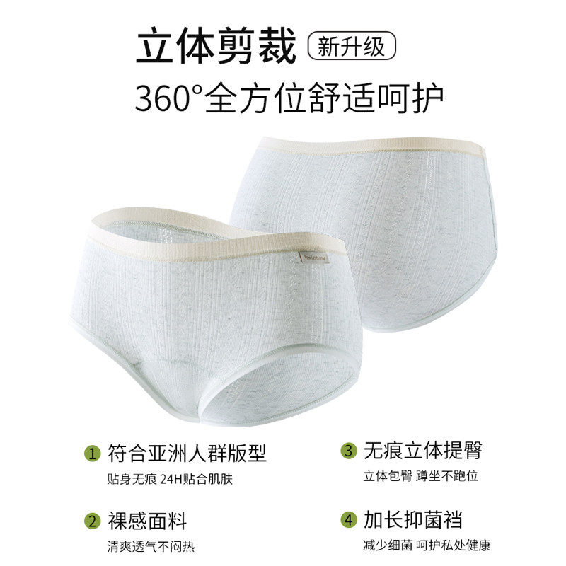草本初色妇炎洁内裤女2025新款中高腰加长纯棉底裆无痕抗菌三角裤