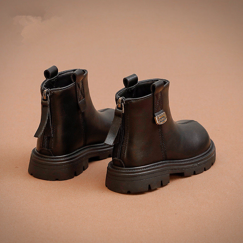 巴布豆女童鞋儿童公主马丁靴2025新款秋冬宝宝加绒皮靴二棉鞋短靴