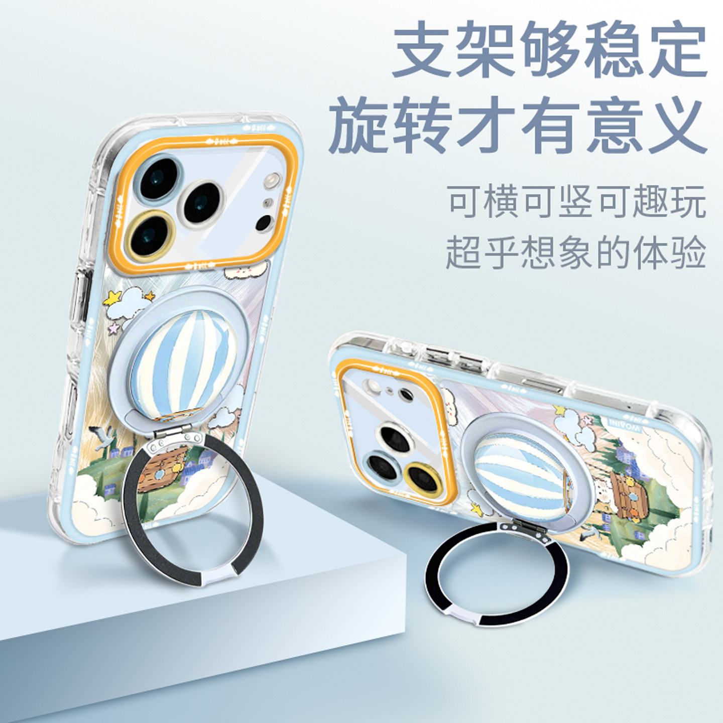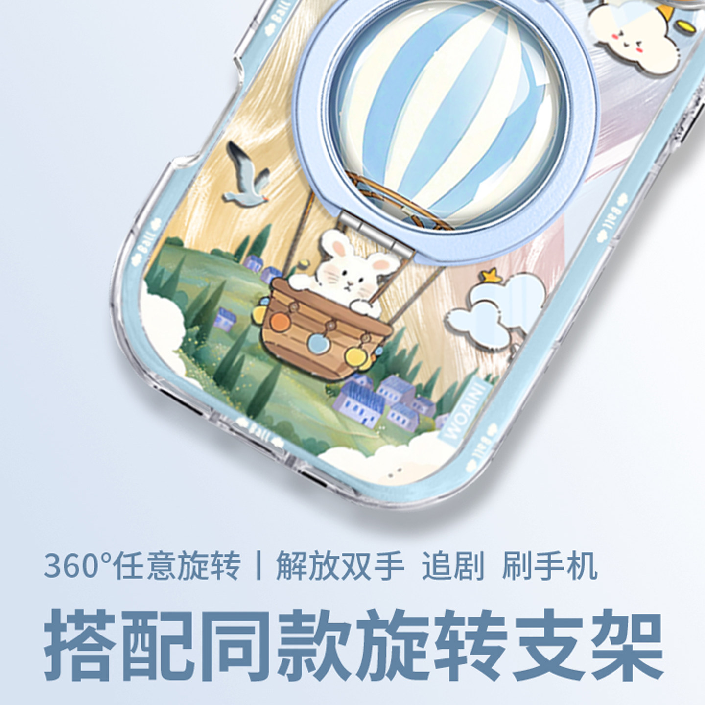 沃艾尼适用苹果17promax手机壳卡通热气球16pm彩绘油画iPhone14pro旋转支架13透明15p硅胶软壳11手链挂绳plus
