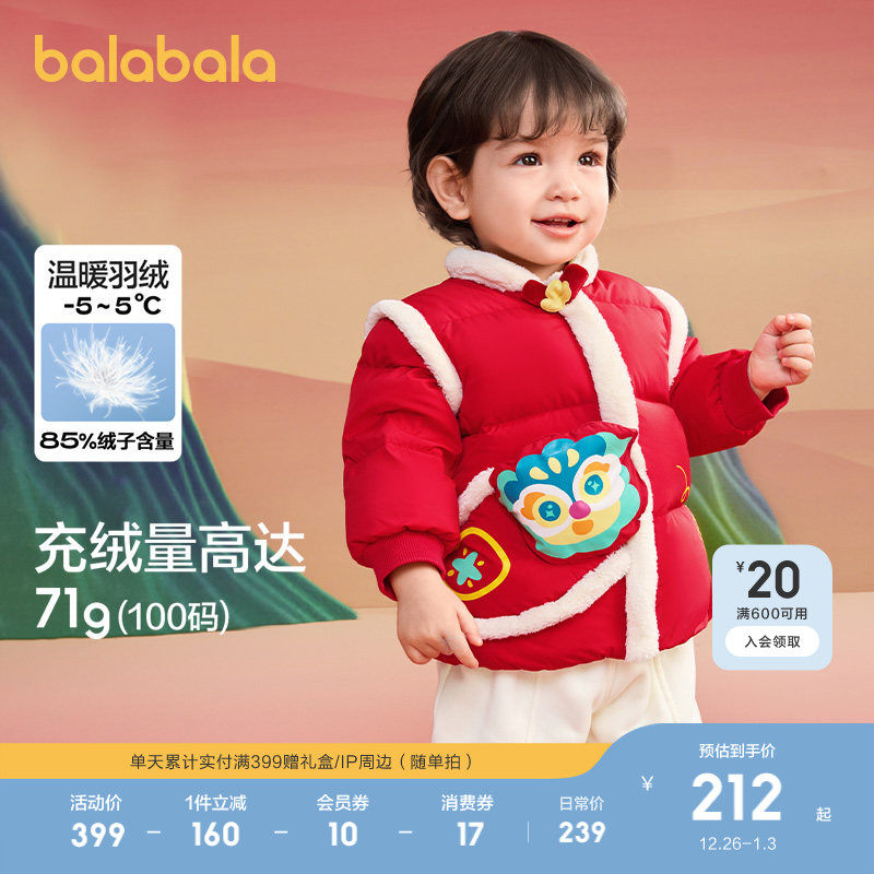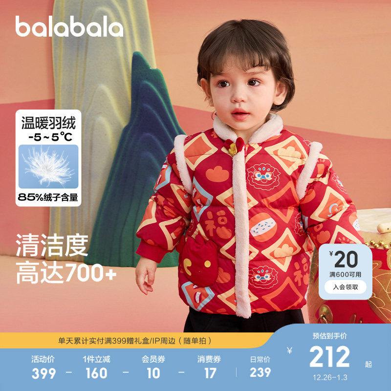 巴拉巴拉童装婴儿羽绒服宝宝外套红色拜年服春秋新中式新年萌上衣
