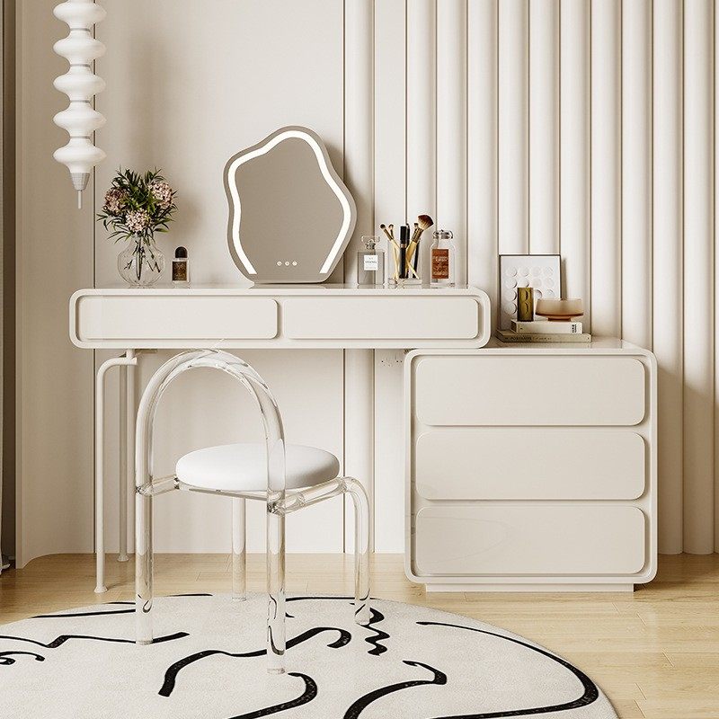 法式奶油风实木梳妆台卧室现代简约伸缩网红化妆柜斗柜一体化妆桌