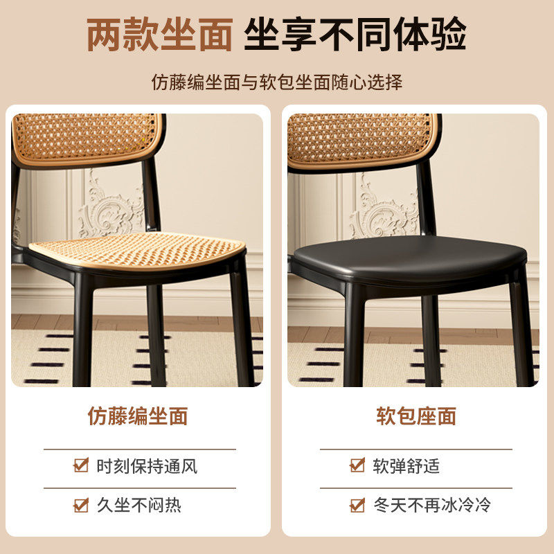 2025新款餐椅靠背塑料藤编椅子家用休闲椅备用凳子可叠放板凳商用