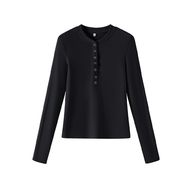 NOB真维斯黑色长袖t恤女2026新款小个子亨利领修身短款内搭打底衫