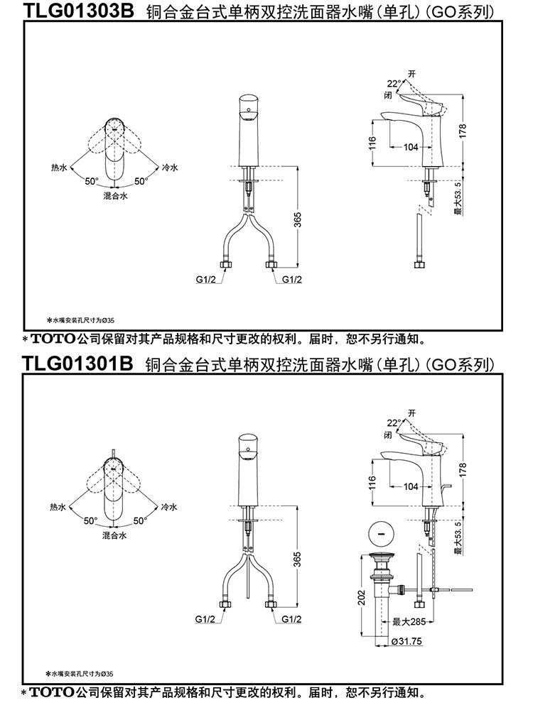 TOTO龙头TLG01301B TLG01303B面盆台盆洗手盆冷热水龙头(05-F)