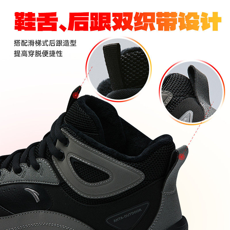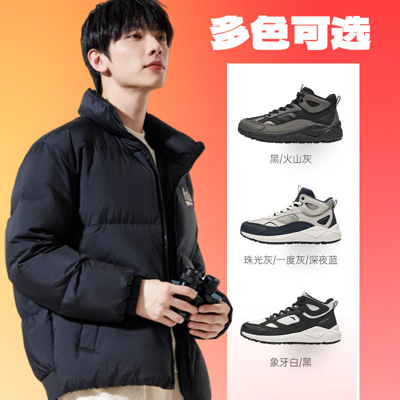 安踏加绒加厚保暖棉鞋男冬季潮流高帮休闲鞋橡胶大底防滑耐磨男鞋