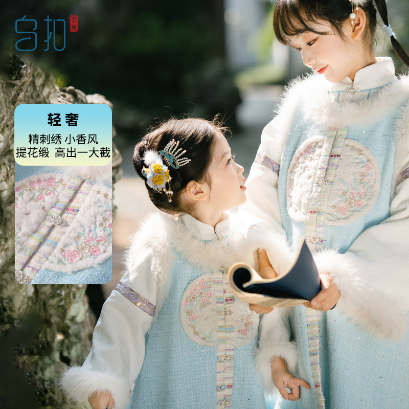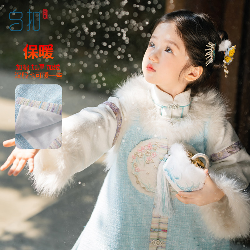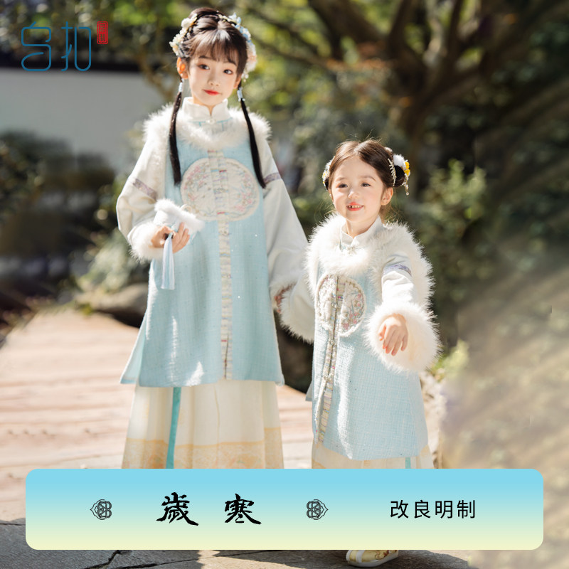 乌扣.岁寒 汉服冬款女童加厚明制比甲套装儿童中国风古装襦裙冬季