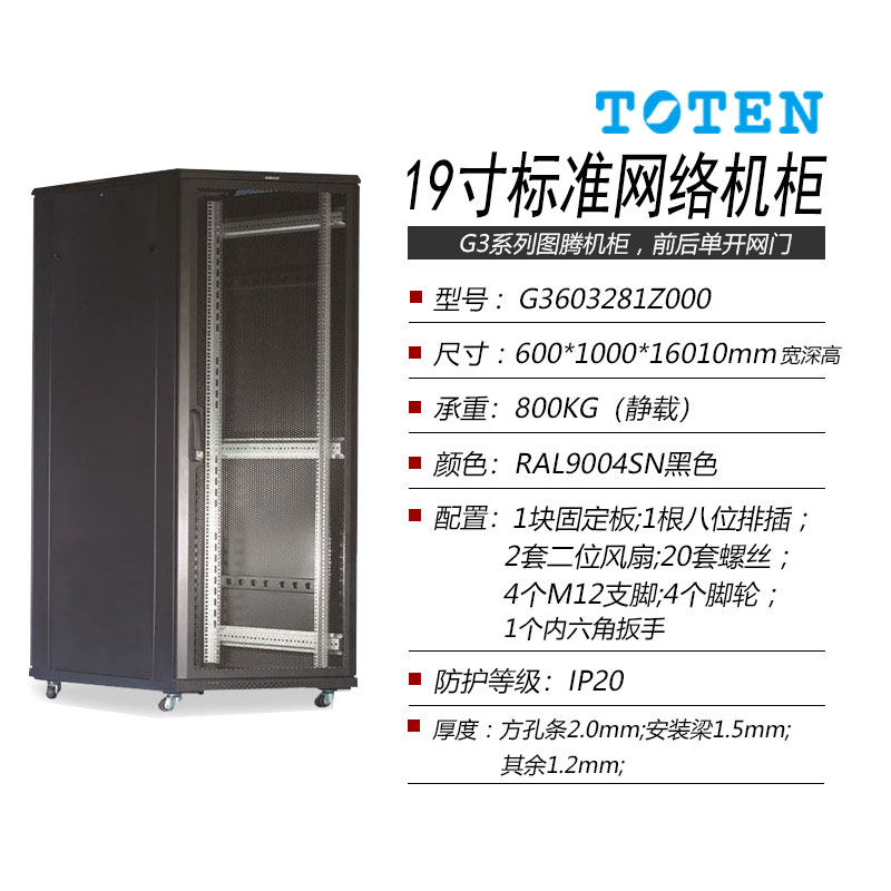 图腾32U机柜G36032单开网孔门1.6米高19英寸标准弱电网络服务器交换机落地监控柜全国包邮原装TOTEN可家用