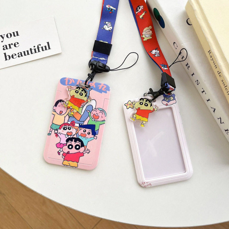 欢乐蜡笔小新胸卡长绳卡套学生保护卡门禁公交车卡套挂脖书包挂件带挂绳校牌工厂牌钥匙扣卡套一体