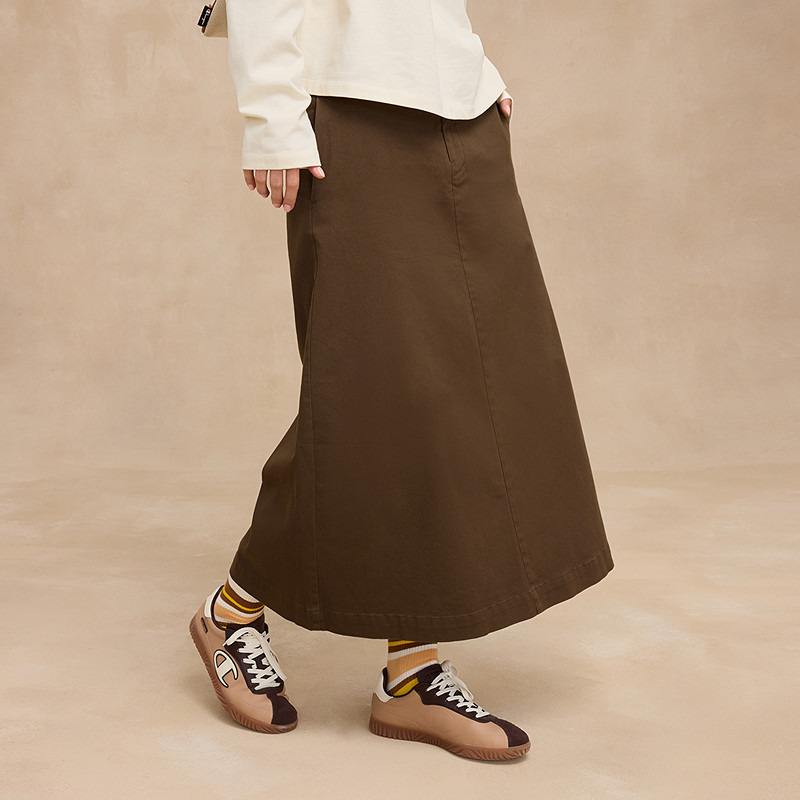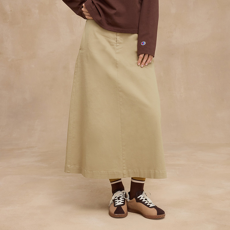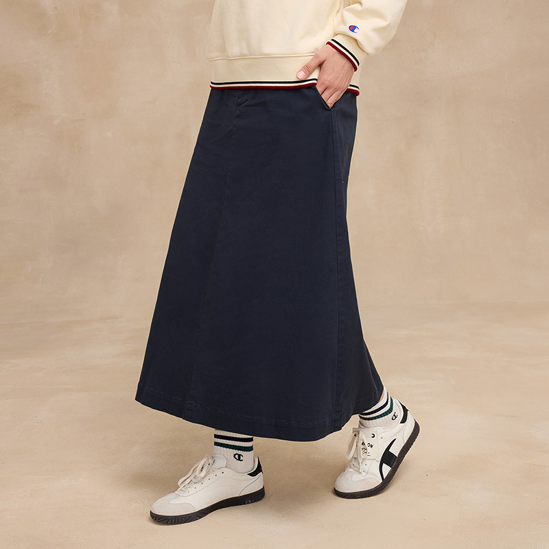 Champion冠军半身裙25冬季新款斜纹布长裙显瘦工装风A字裙盐系秋