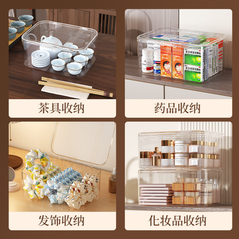 亚克力桌面收纳盒透明防尘整理盒化妆品卧室宿舍办公室带盖杂物盒