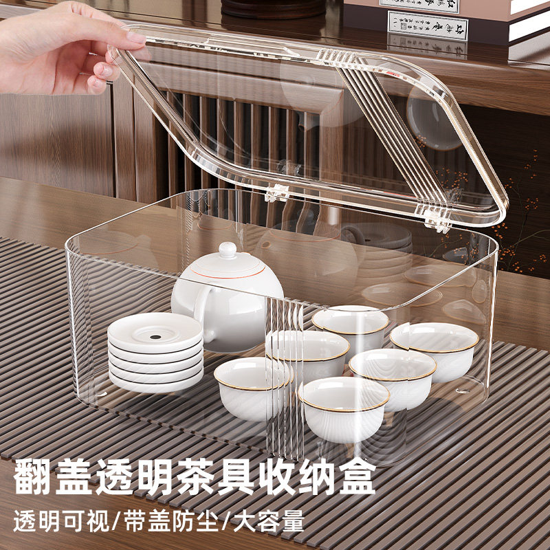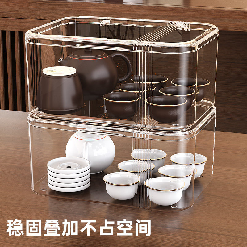 茶具收纳盒家用带盖防尘亚克力透明茶杯存放盒功夫茶壶桌面整理箱