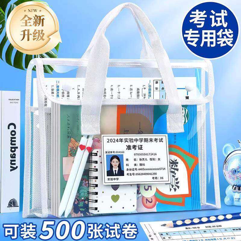 中考防水手提袋考试袋小学生文件袋透明文具补习大容量专用书包公务员女袋子定制补课杰利初中生套装男孩儿童