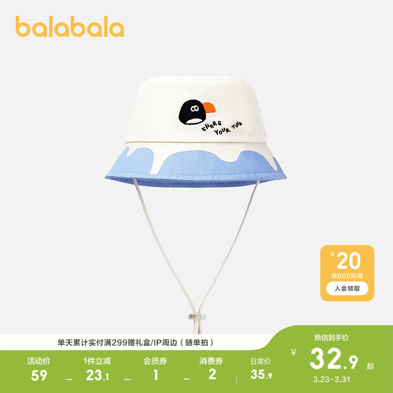 巴拉巴拉儿童帽子男童女童盆帽抗UV卡通图案撞色舒遮阳防晒帽潮流