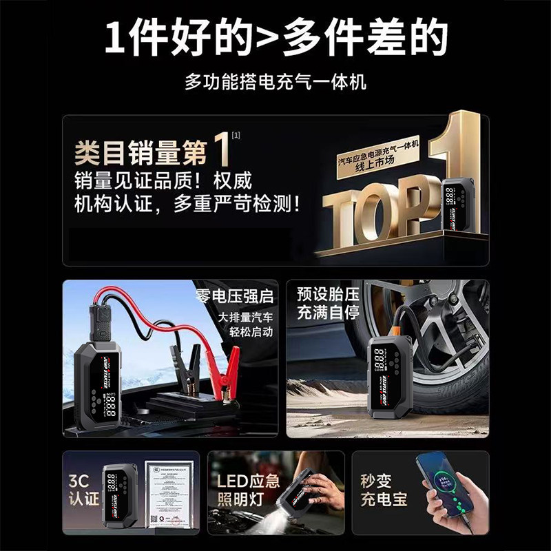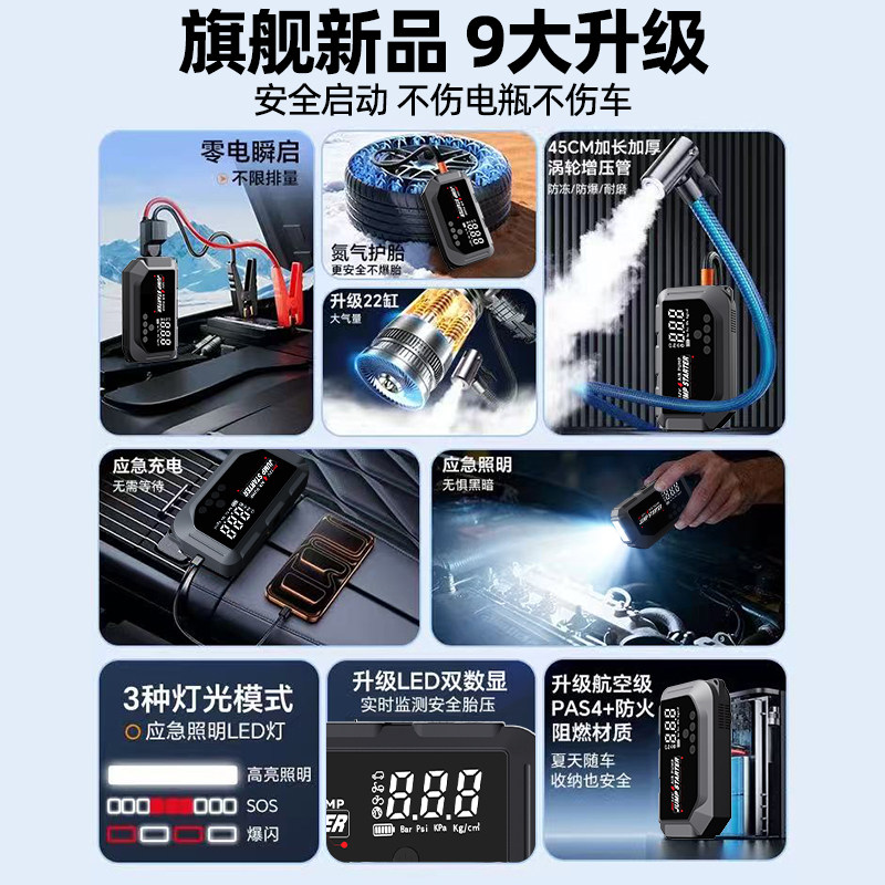 小能人汽车应急启动电源充气泵一体机车载打气电瓶紧急搭电宝神器