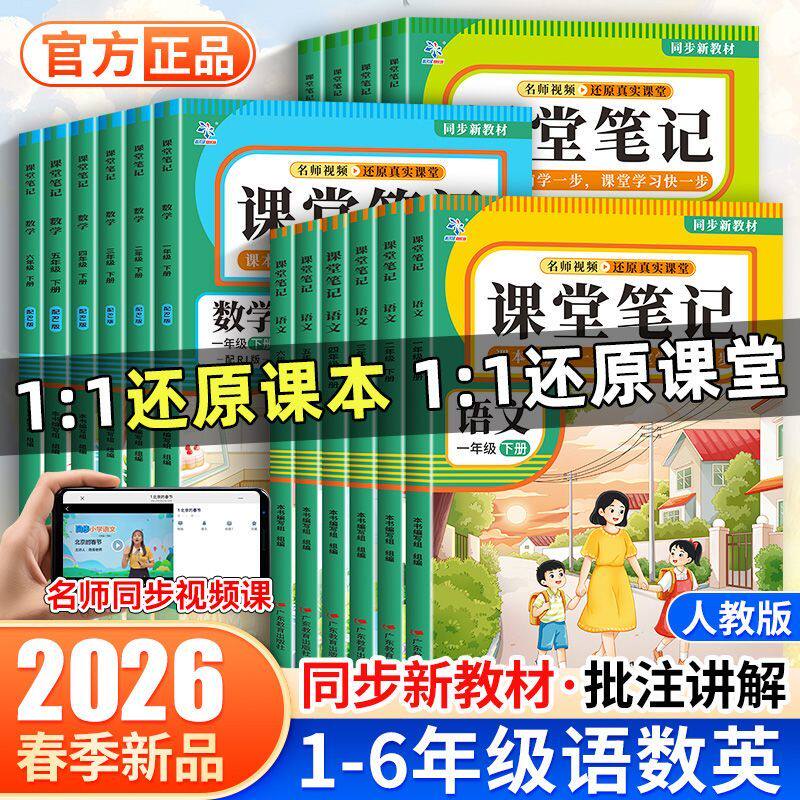 2026春新版课堂笔记一年级二三四年级五六年级下册上册语文数学英语人教版小学课本教材黄冈随堂笔记划重点全解语数英下预习讲解