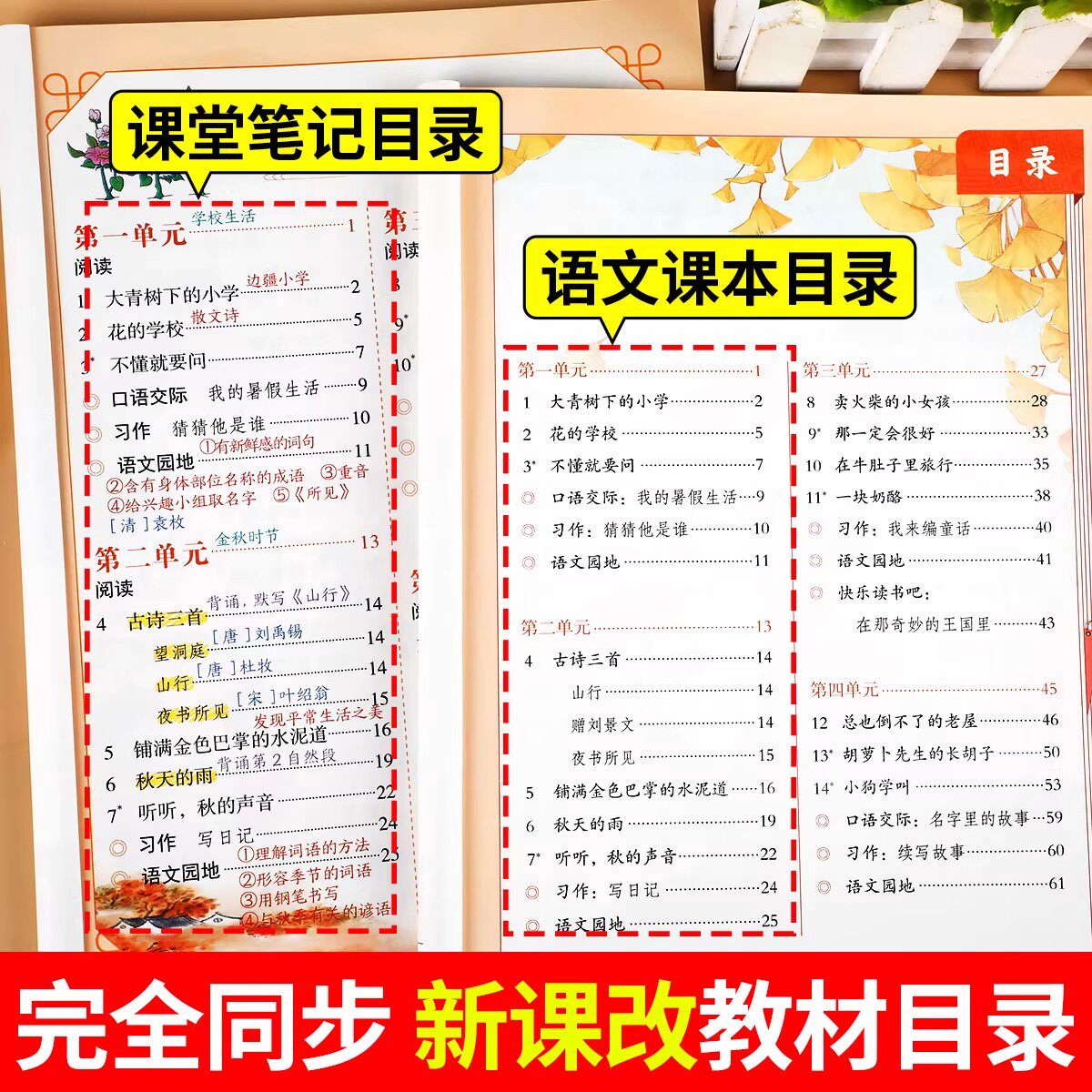 2026新版小学生课堂笔记一年级上册二三四五六年级语文数学英语人教版课本同步教材解读预习资料书计算语数英6年级课文阅读默写