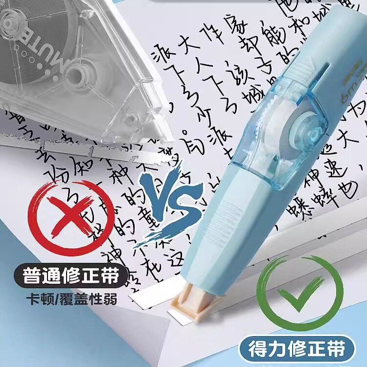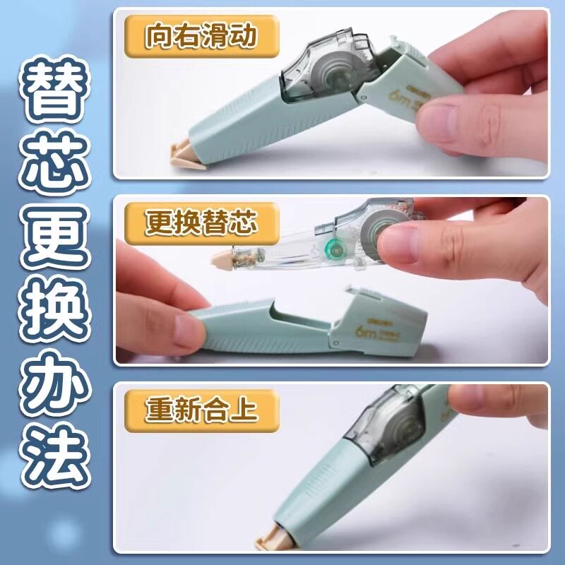 得力按动式修正带小学生专用笔形涂改带大容量初高中生可换替芯改正带男女生高颜值黑科技无痕去字修改带批发