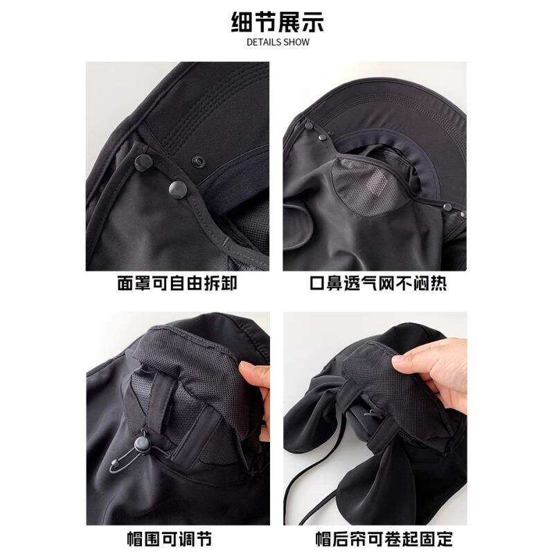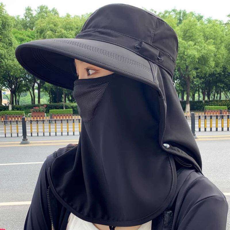 防晒帽护颈遮脸面罩一体夏季防紫外线冰丝透气遮阳太阳全脸大帽檐