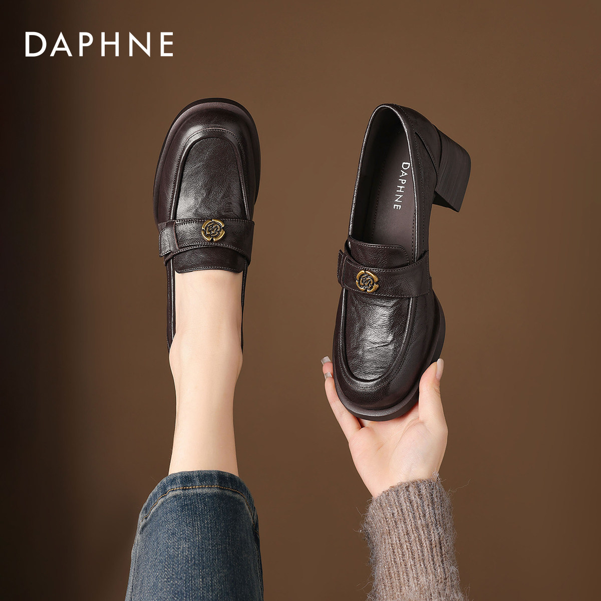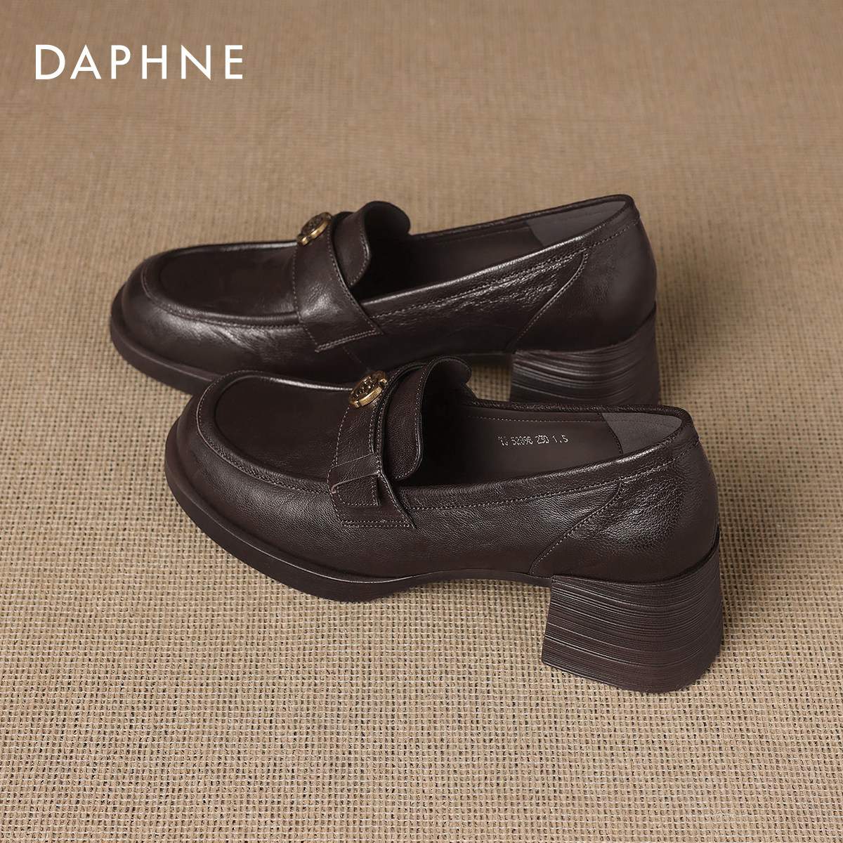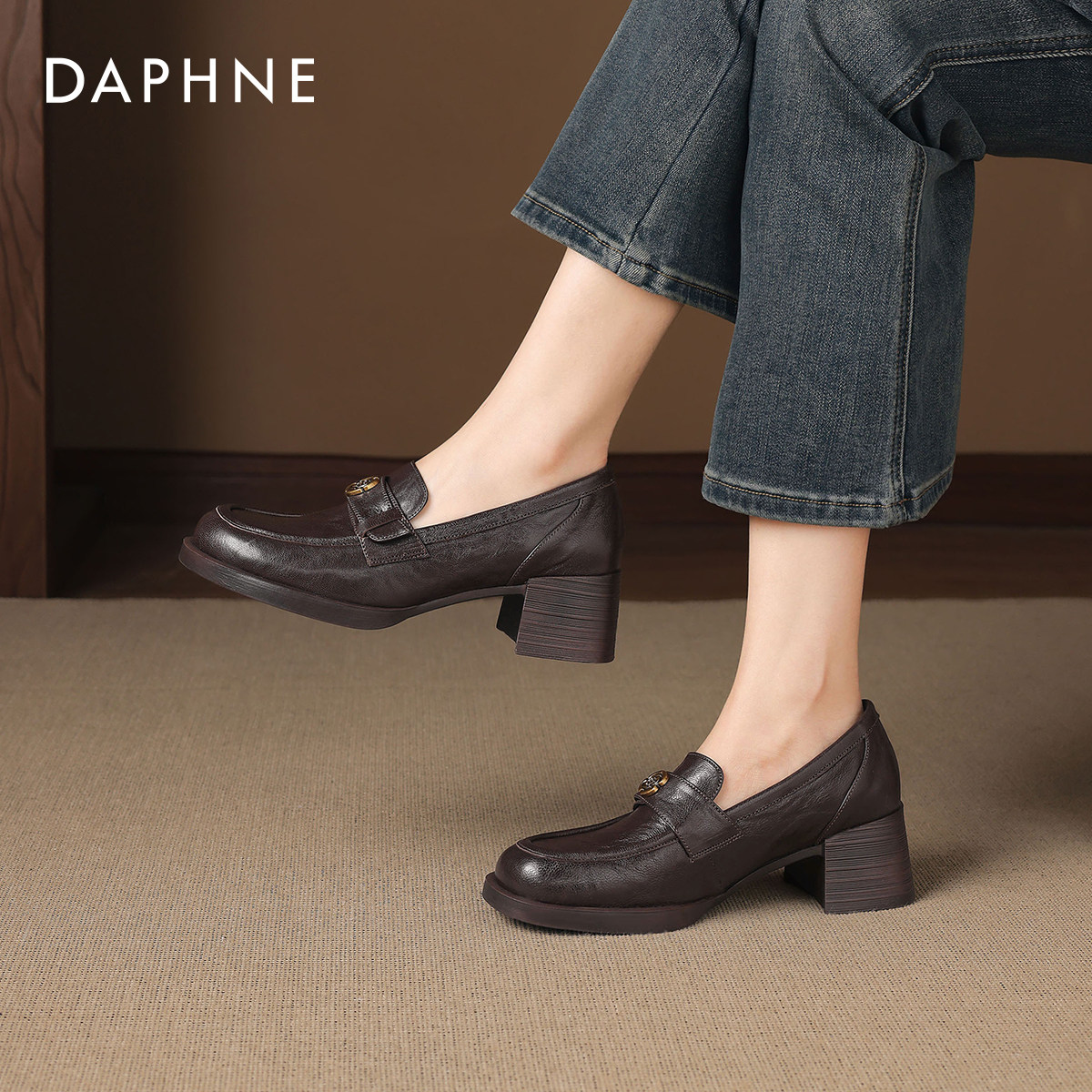 达芙妮高跟乐福鞋女2026新款春季英伦风棕色小皮鞋粗跟单鞋高跟鞋
