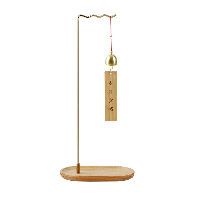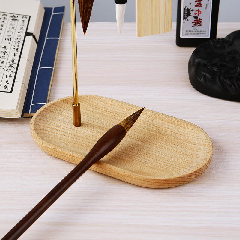 榉木笔挂毛笔收纳架国风铁艺挂架风铃挂件实木底盘桌面摆件毛笔架