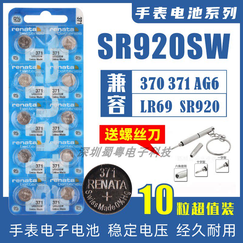 Renata瑞士SR920SW/AG6/LR920/371手表纽扣电池通用电子371A 10粒