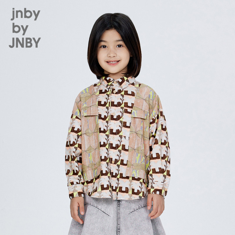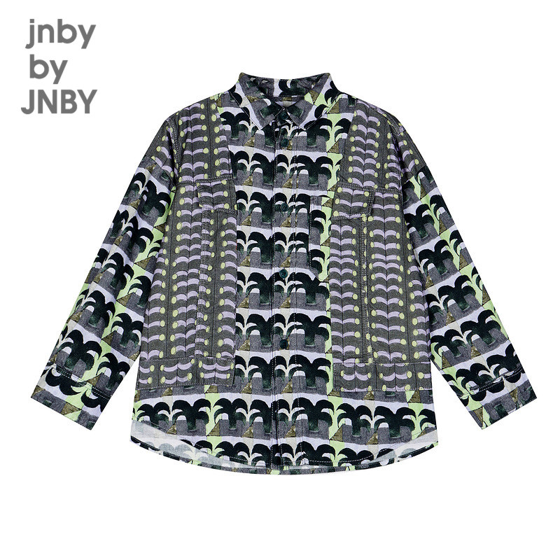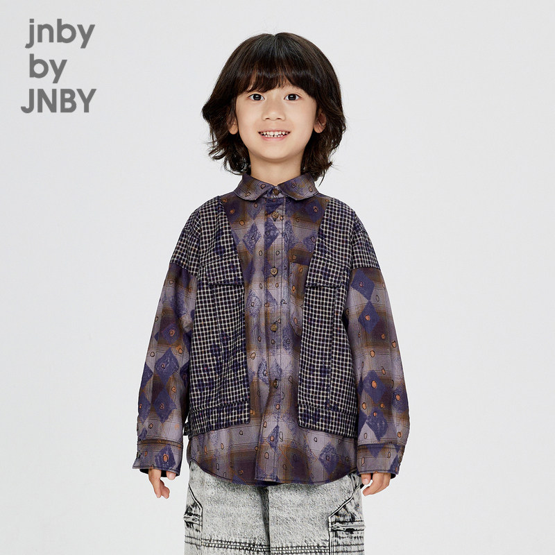 江南布衣童装棉拼接长袖衬衫植物图案秋冬男童儿童jnbybyjnby