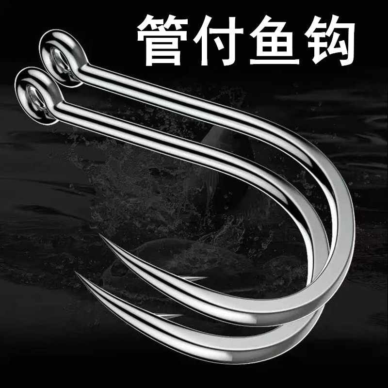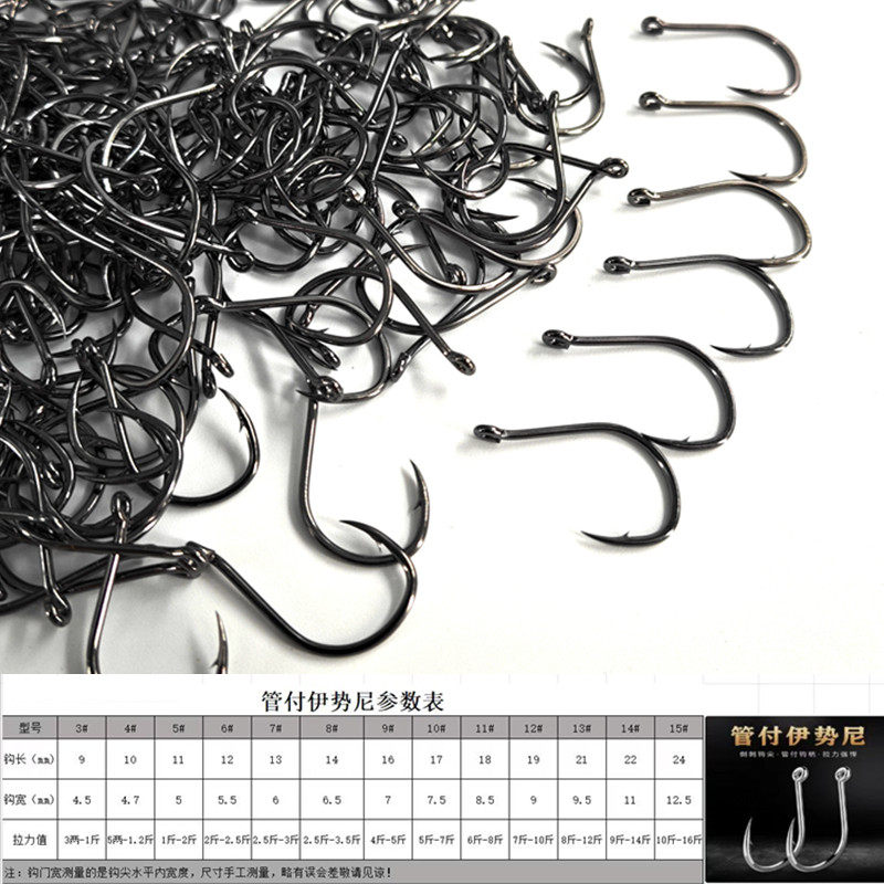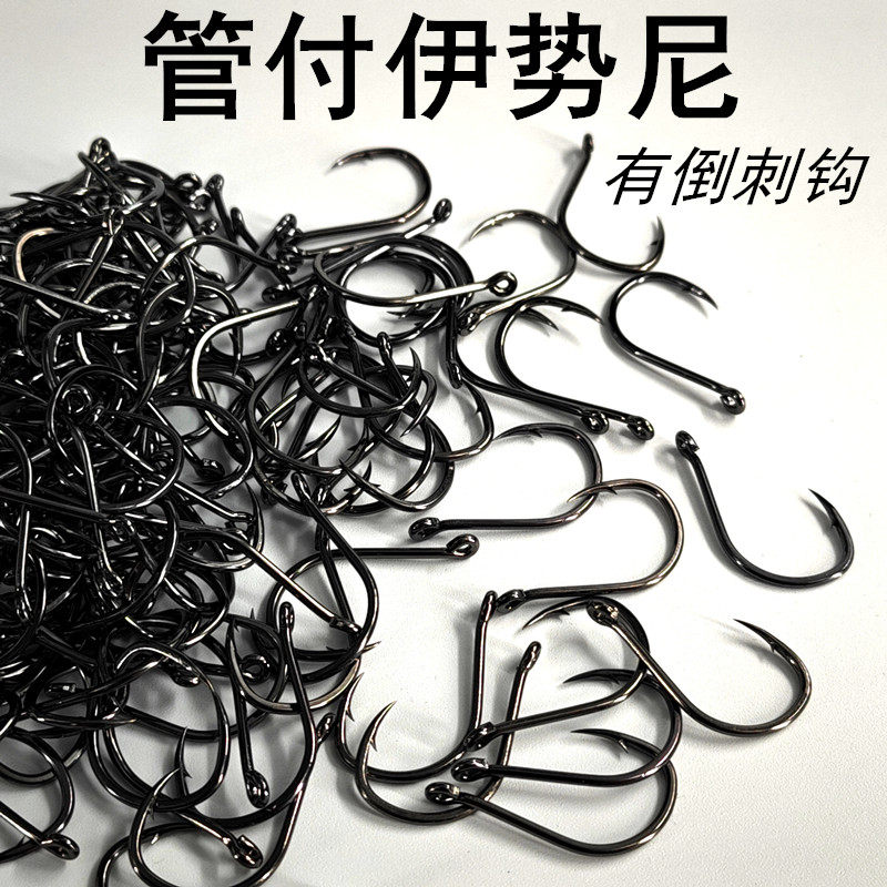 管付伊势尼歪嘴鱼钩带孔钩子路亚单钩海钓管付钩带圈钓鱼钩黑鱼钩
