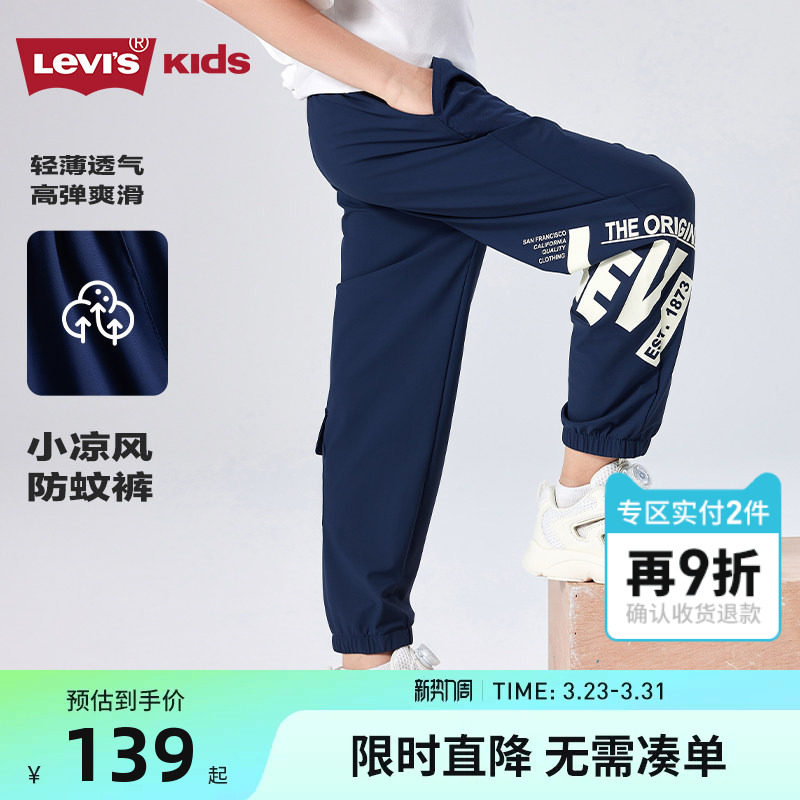 Levi's李维斯男童裤子防蚊裤2026夏季新款儿童束脚长裤凉感休闲裤