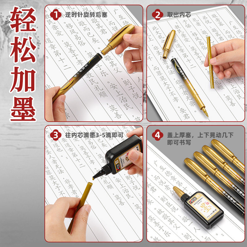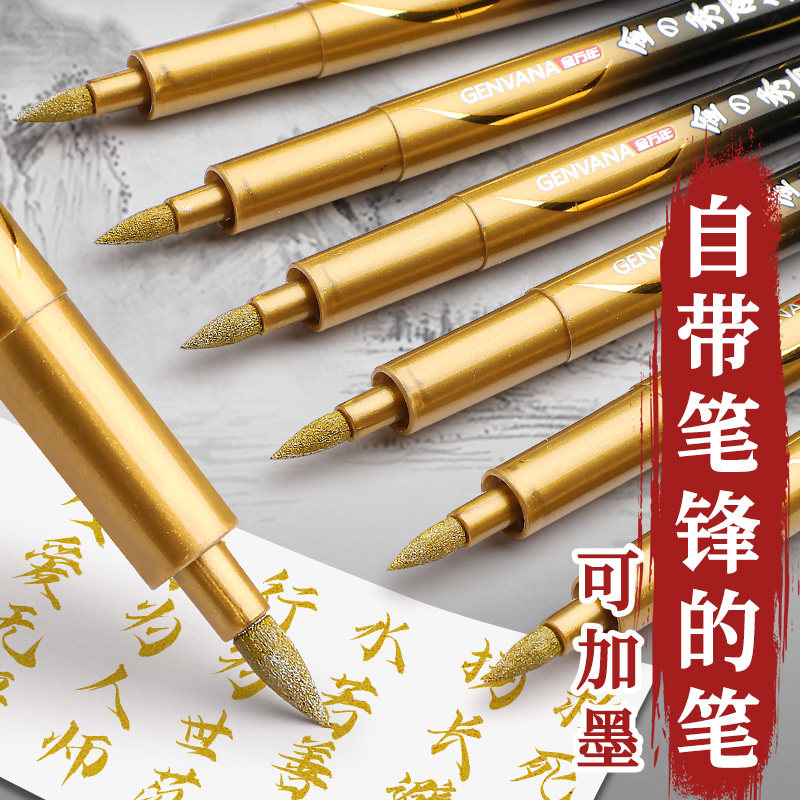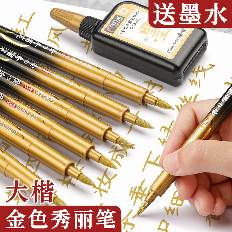 金色秀丽笔大楷软笔软头毛笔书法练字婚书笔粗写喜帖请帖订婚金墨请柬烫金笔鎏金笔婚礼喜字婚庆金笔金字笔