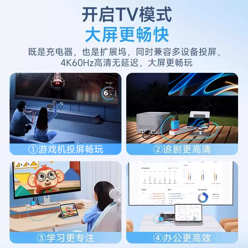 【升级四合一|快充+投屏+扩展一步到位】