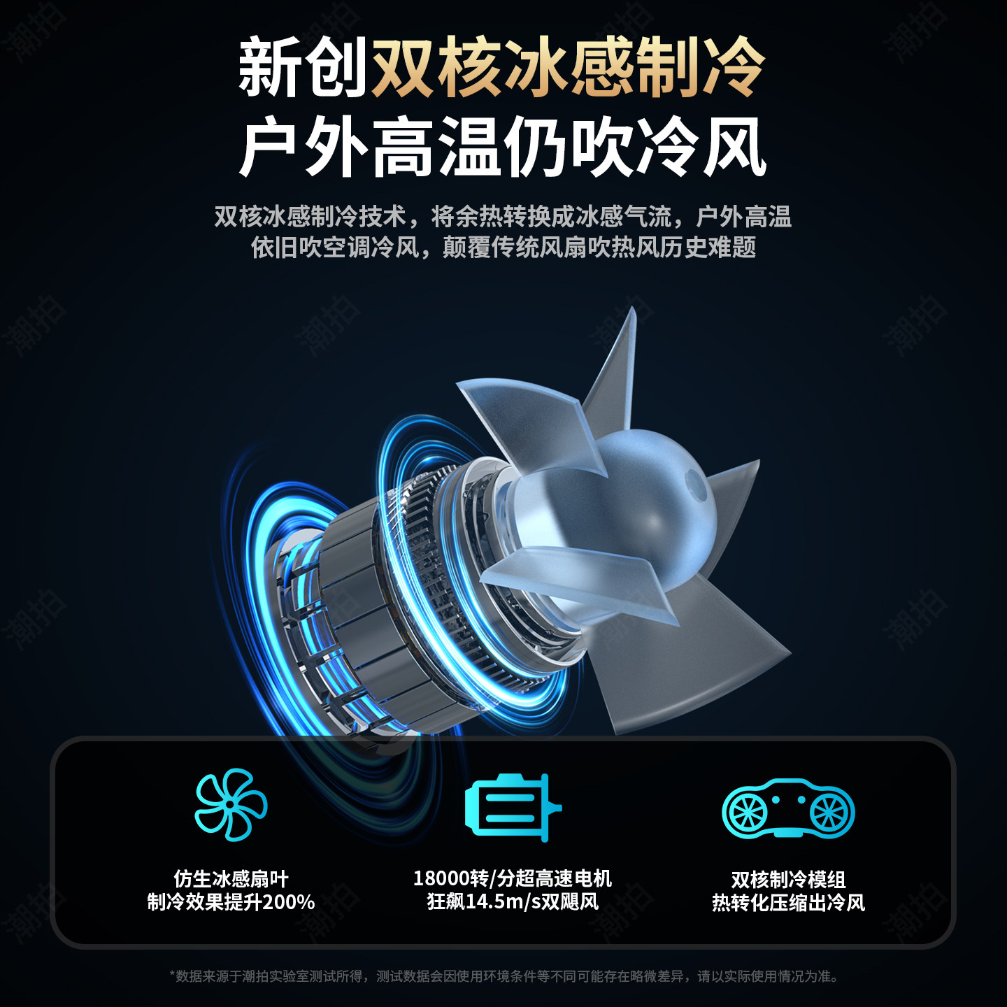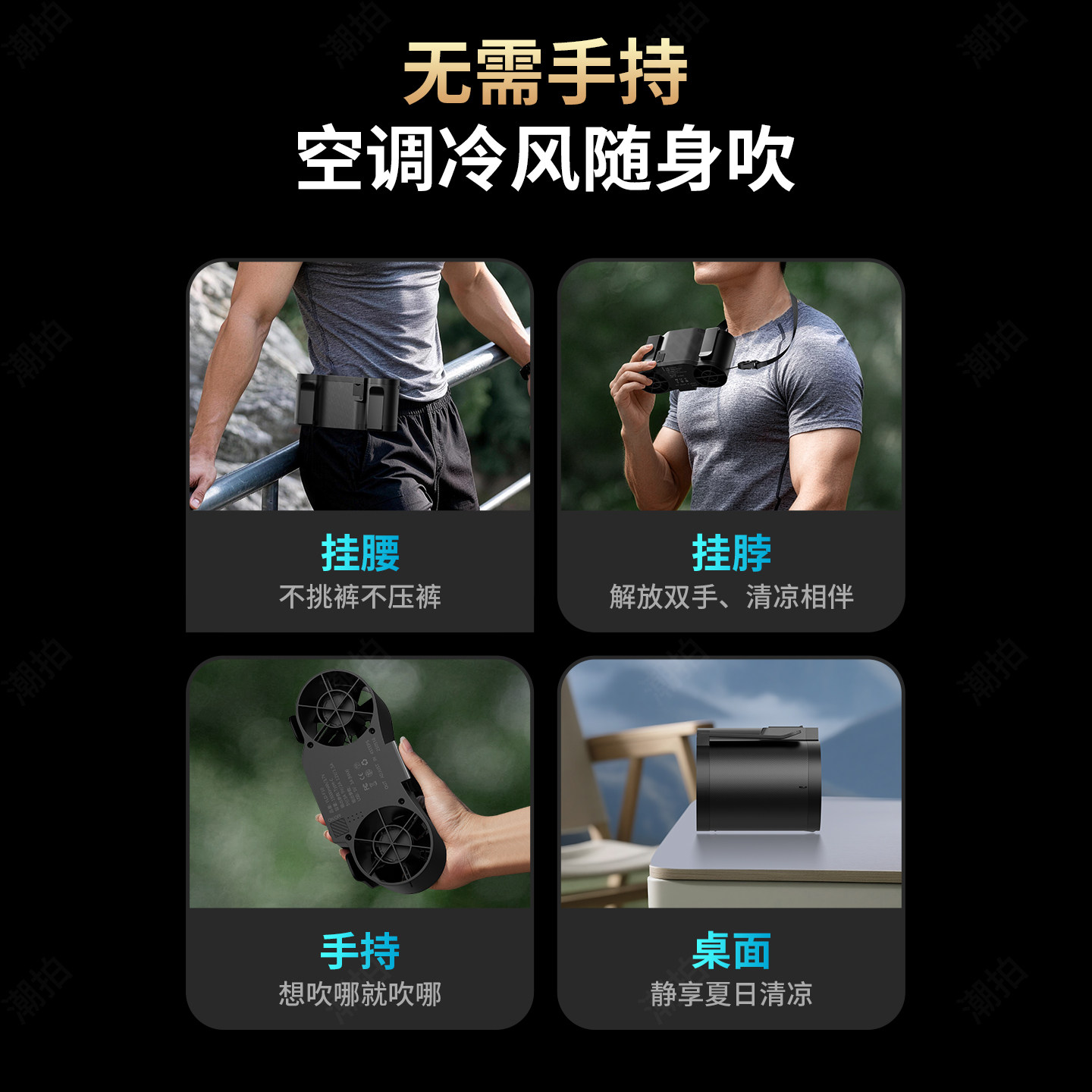 潮拍可穿戴风扇充电涡轮大容量挂腰随身便携式夹腰间夏天户外工地消暑神器超长挂脖制冷空调夹腰间电风扇双孔
