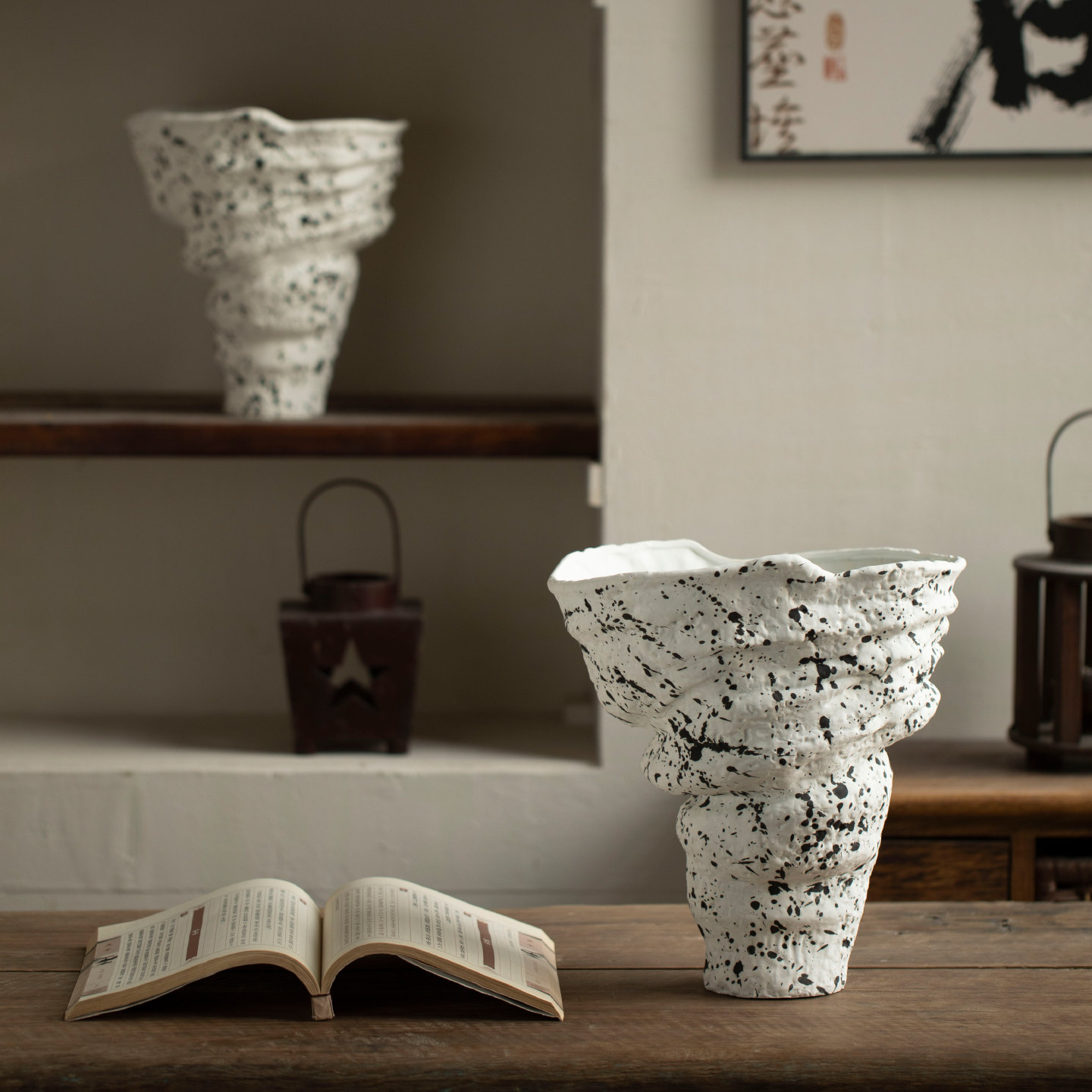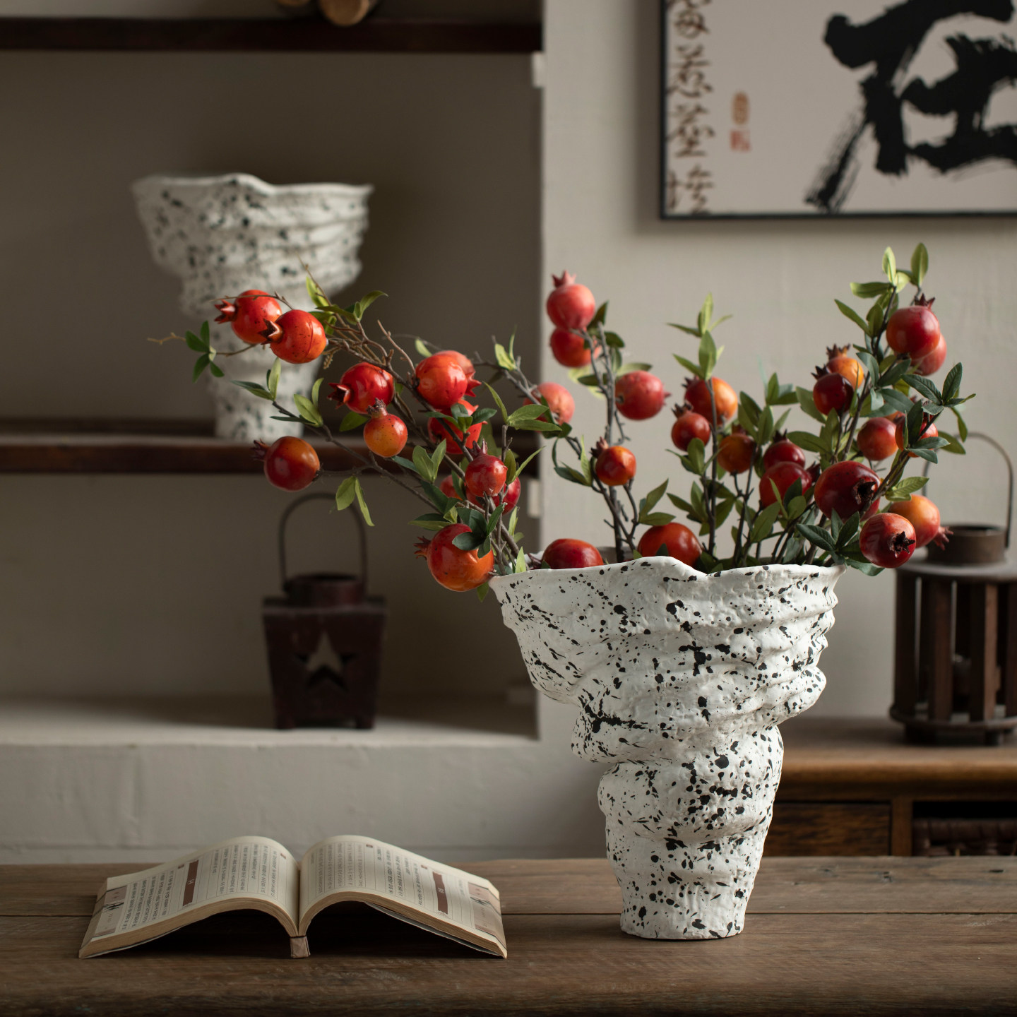 景德镇侘寂风粗陶罐斑驳复古禅意陶瓷花瓶民宿酒店客厅插花摆件