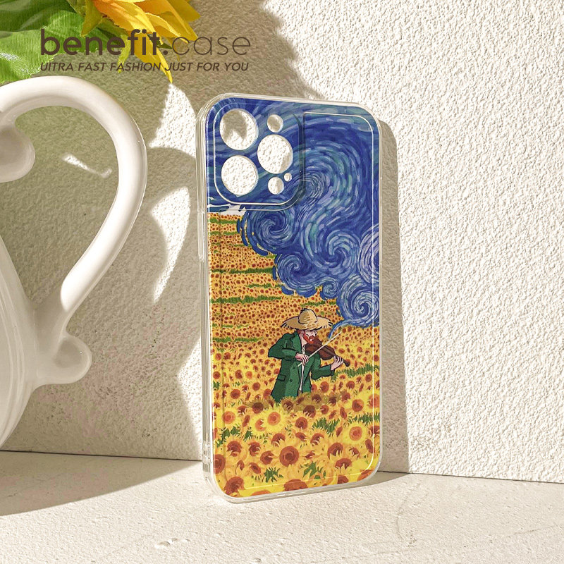 Benefit潮牌油画拉小提琴梵高17pro16适用15苹果13promax手机壳iphone12防摔艺术14promax新11女xsmax透明xr