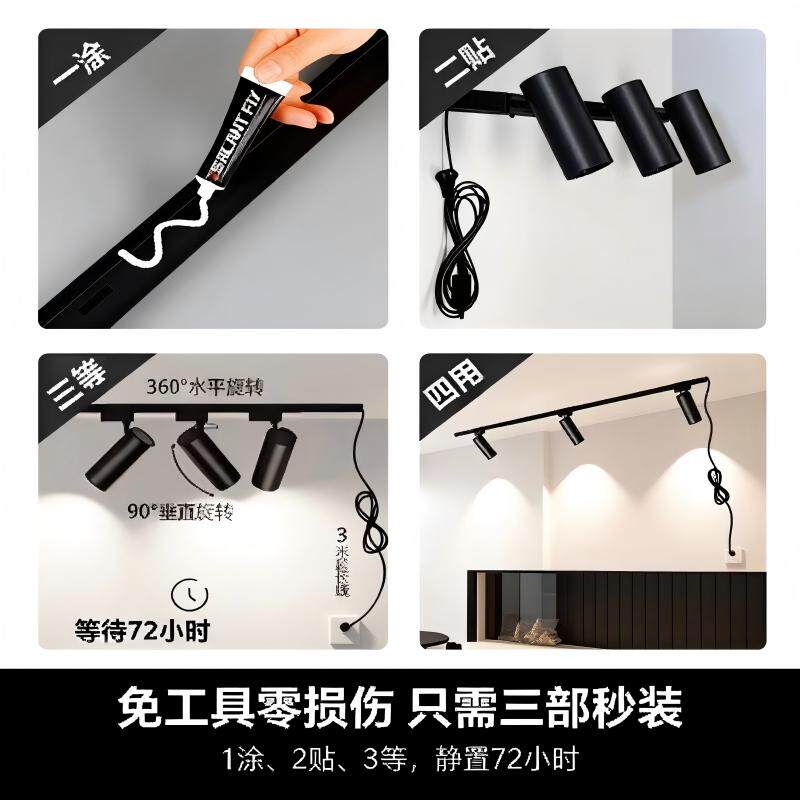 射灯免接线免打孔店铺商用免布线可调可移动插电免安装轨道灯客厅