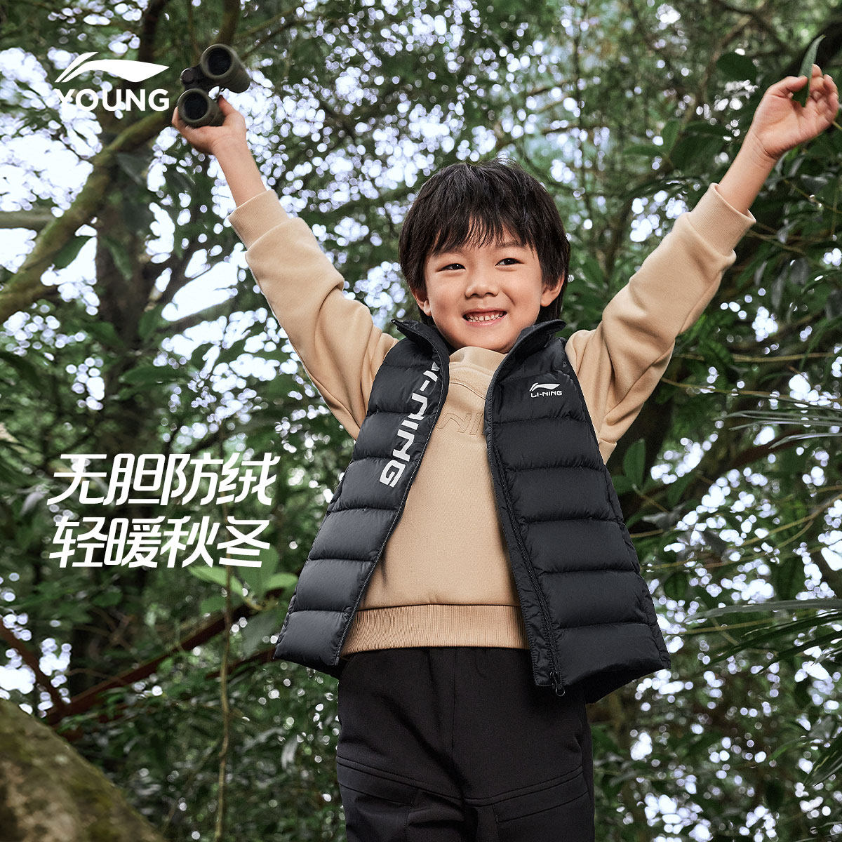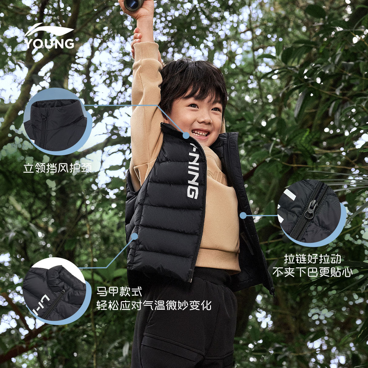 李宁童装羽绒马甲男女小大童青少年运动生活系列保暖冬季休闲童装