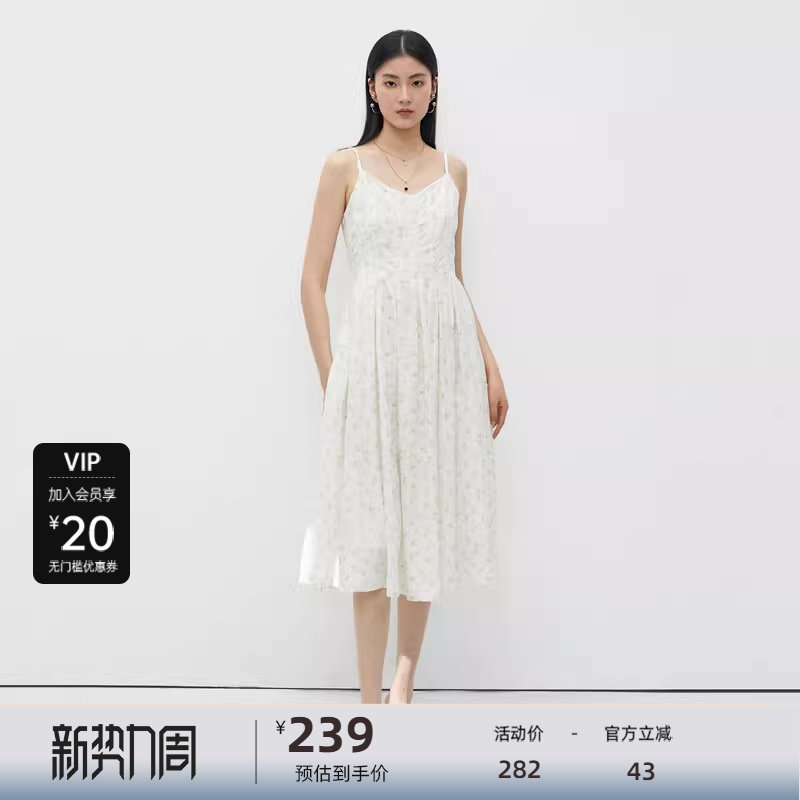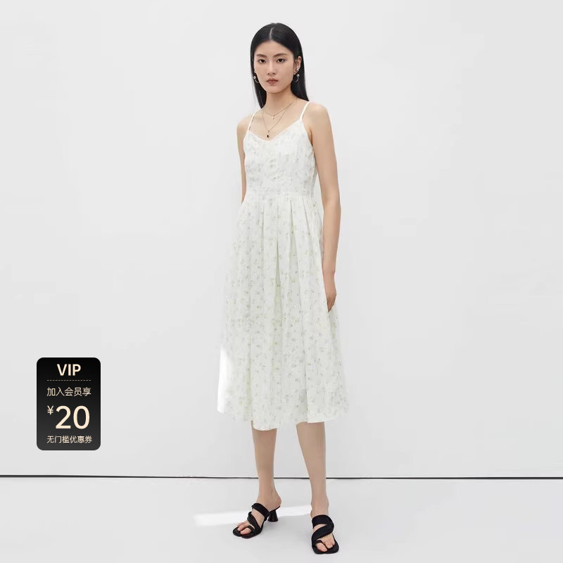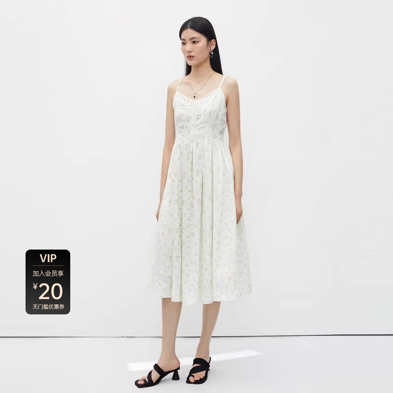 吊带连衣裙 高腰压褶 清新碎花