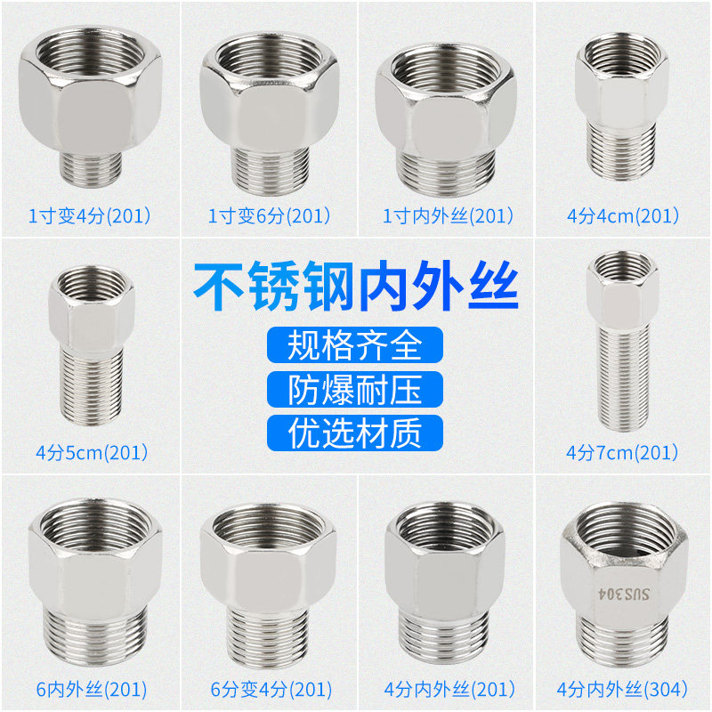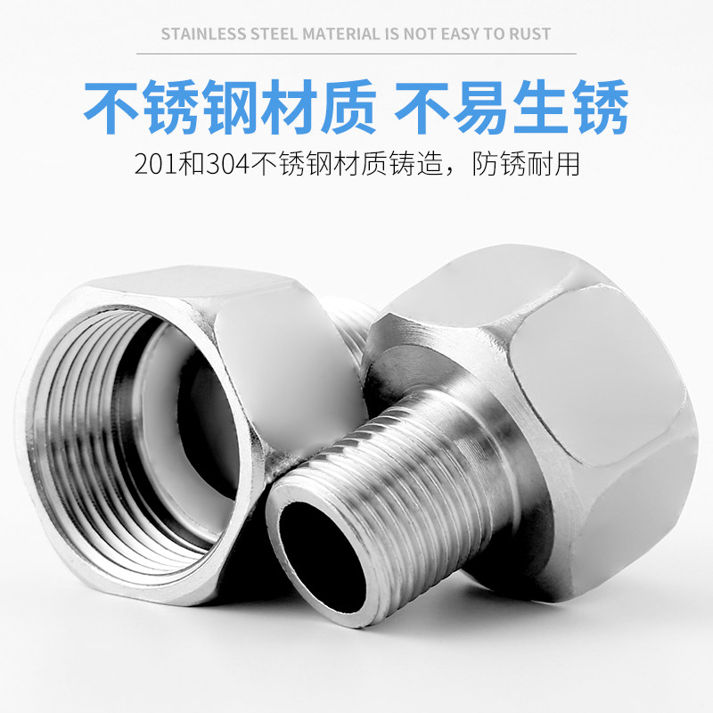 不锈钢内外丝接头内丝直接加厚加长6分转4分变径头水龙头水管配件