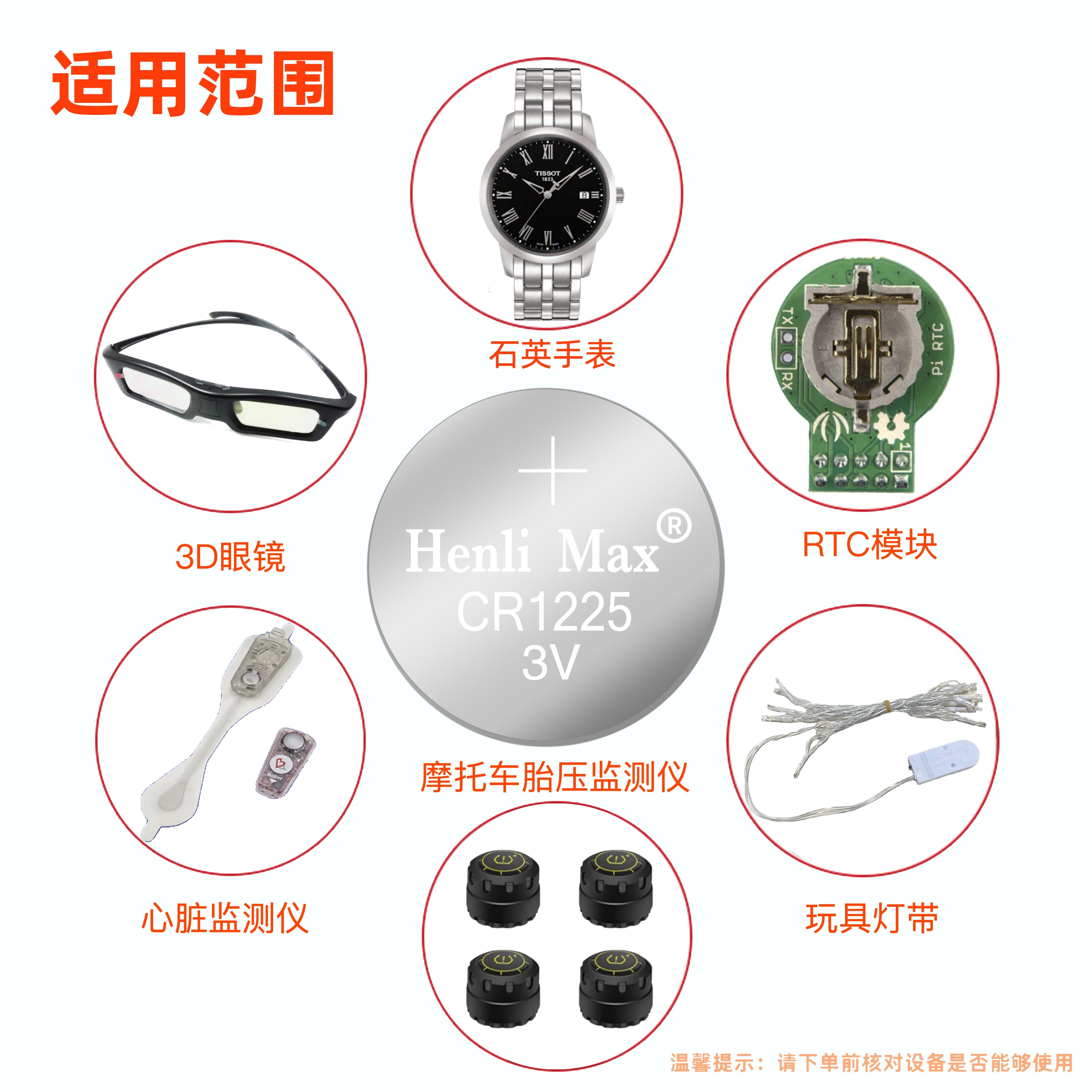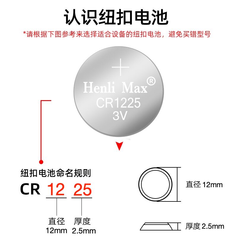 CR1225纽扣电池摩托车胎压监测仪3D眼镜石英手表RTC模块心脏监测