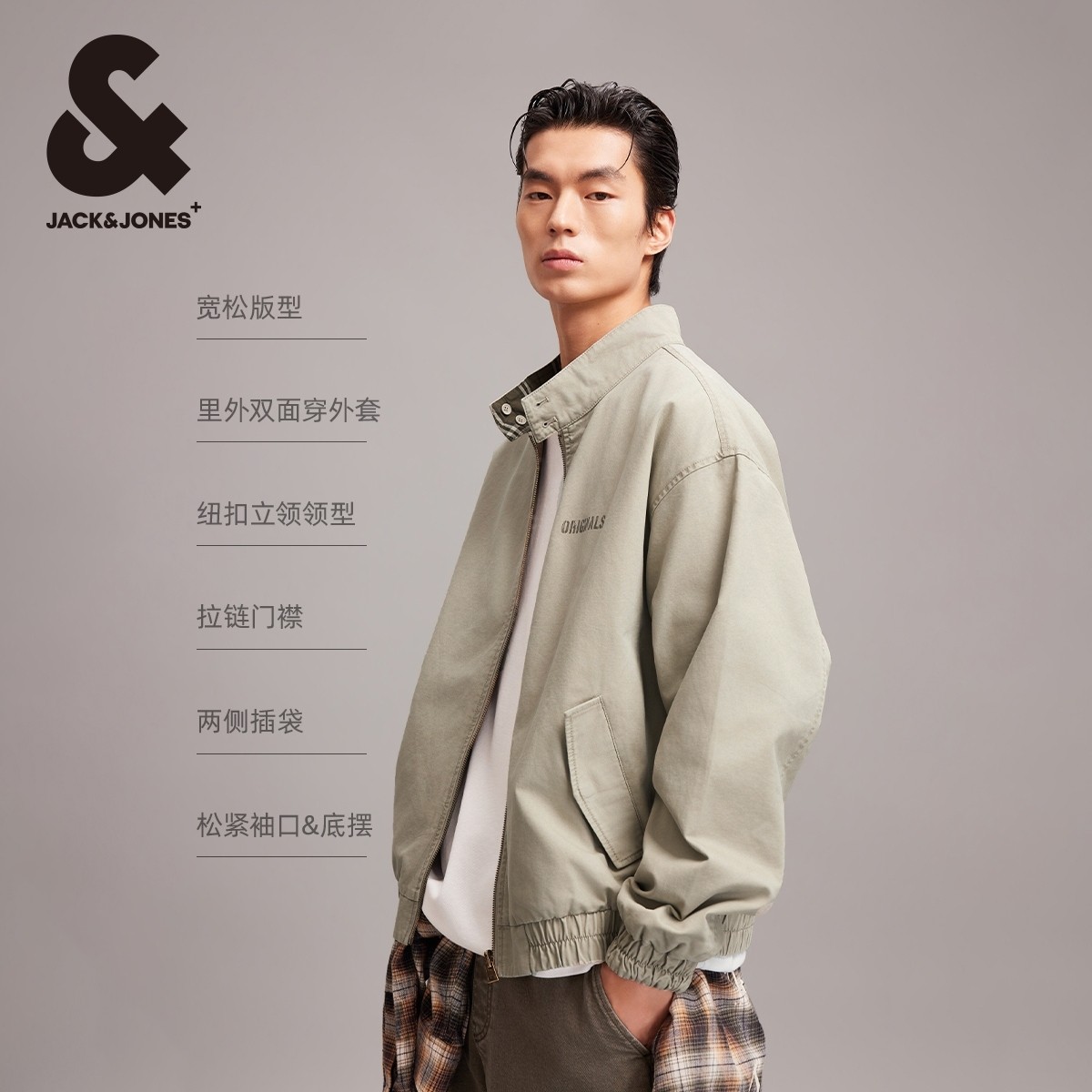 杰克琼斯男装春季新款夹克纯棉工装双面牛仔外套男士酷帅穿搭上衣
