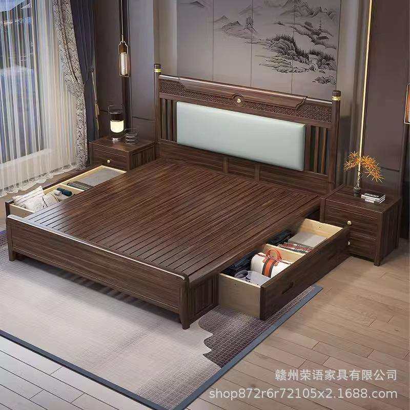 乌金木实木床1米8主卧双人床高端新中式大户型卧室家具储物婚床