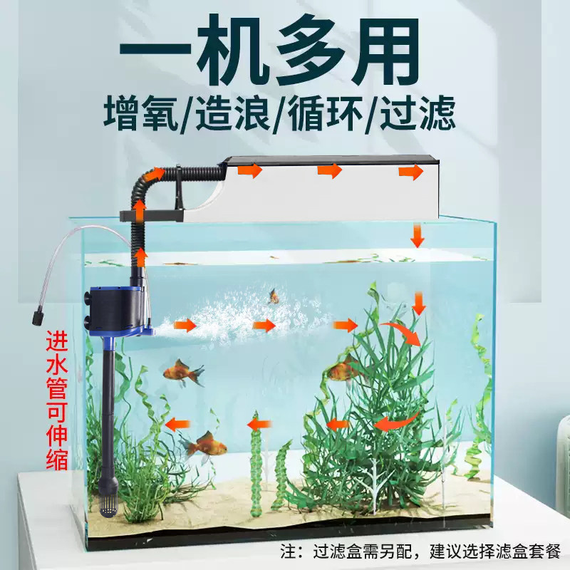 森森鱼缸过滤器四合一潜水泵水族箱静音抽水增氧泵上过滤循环水泵