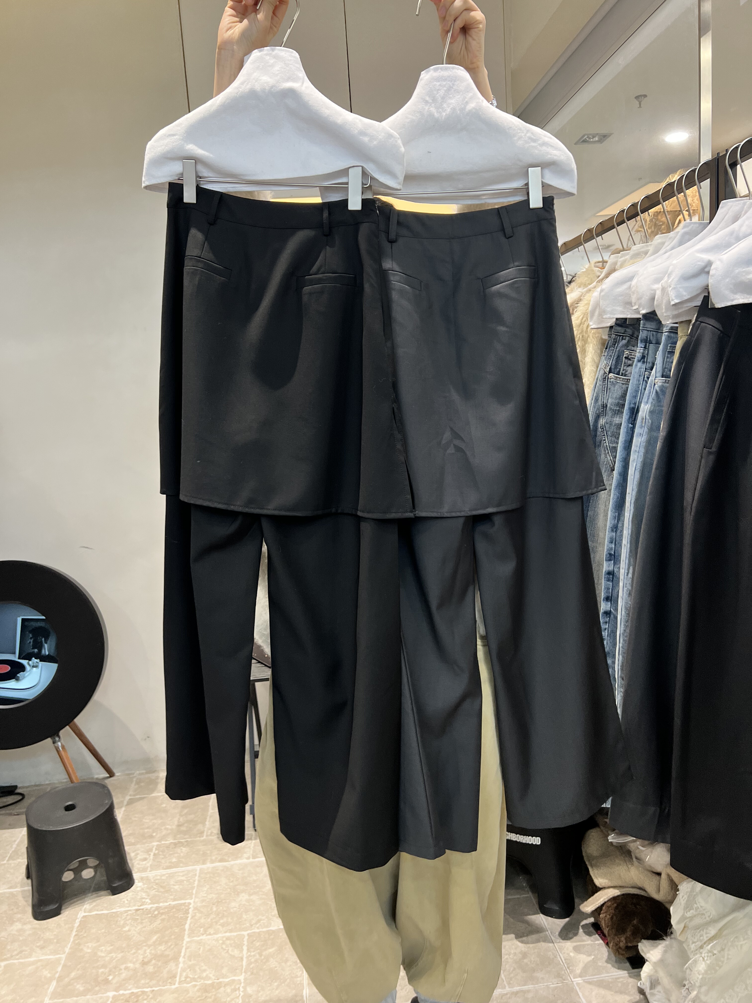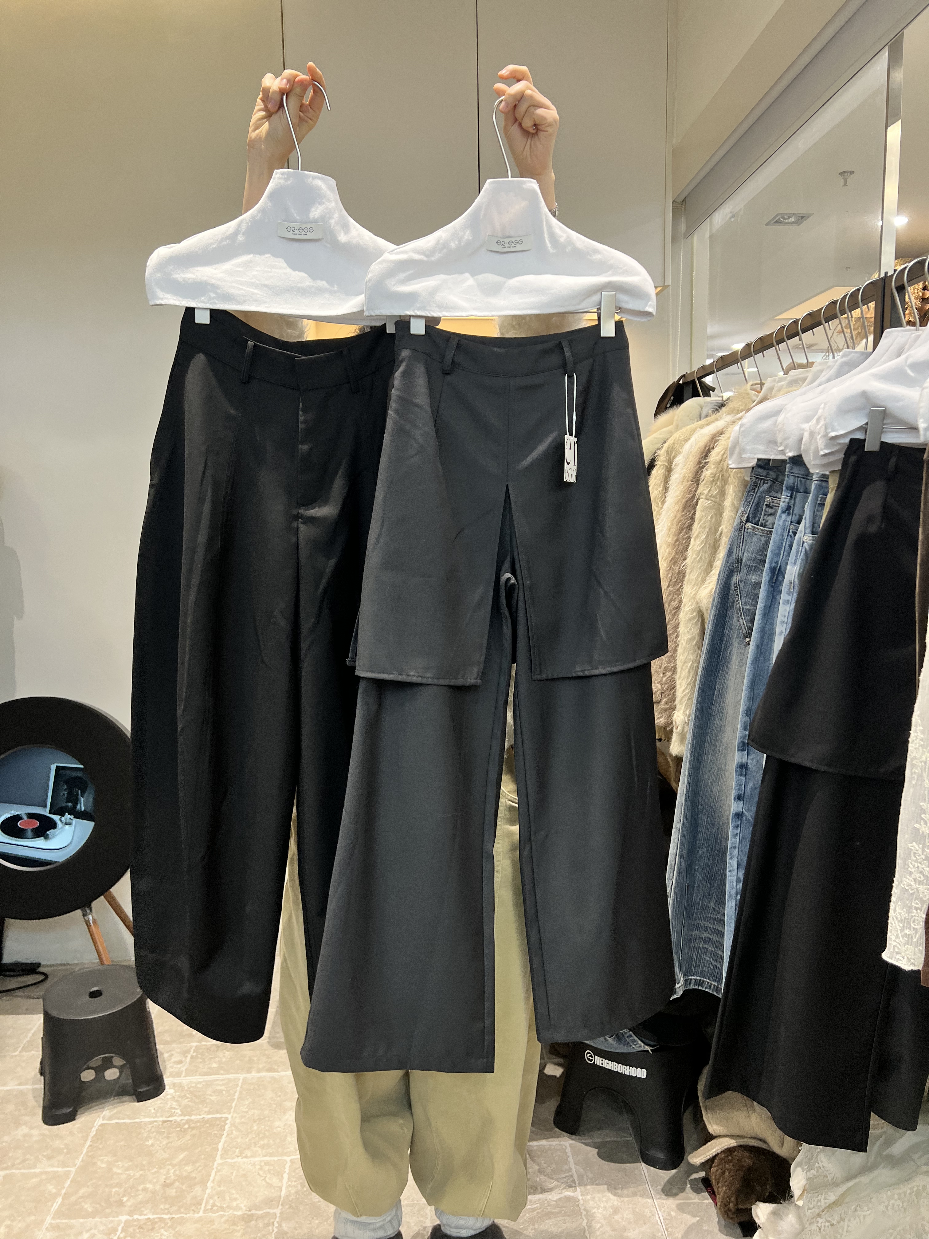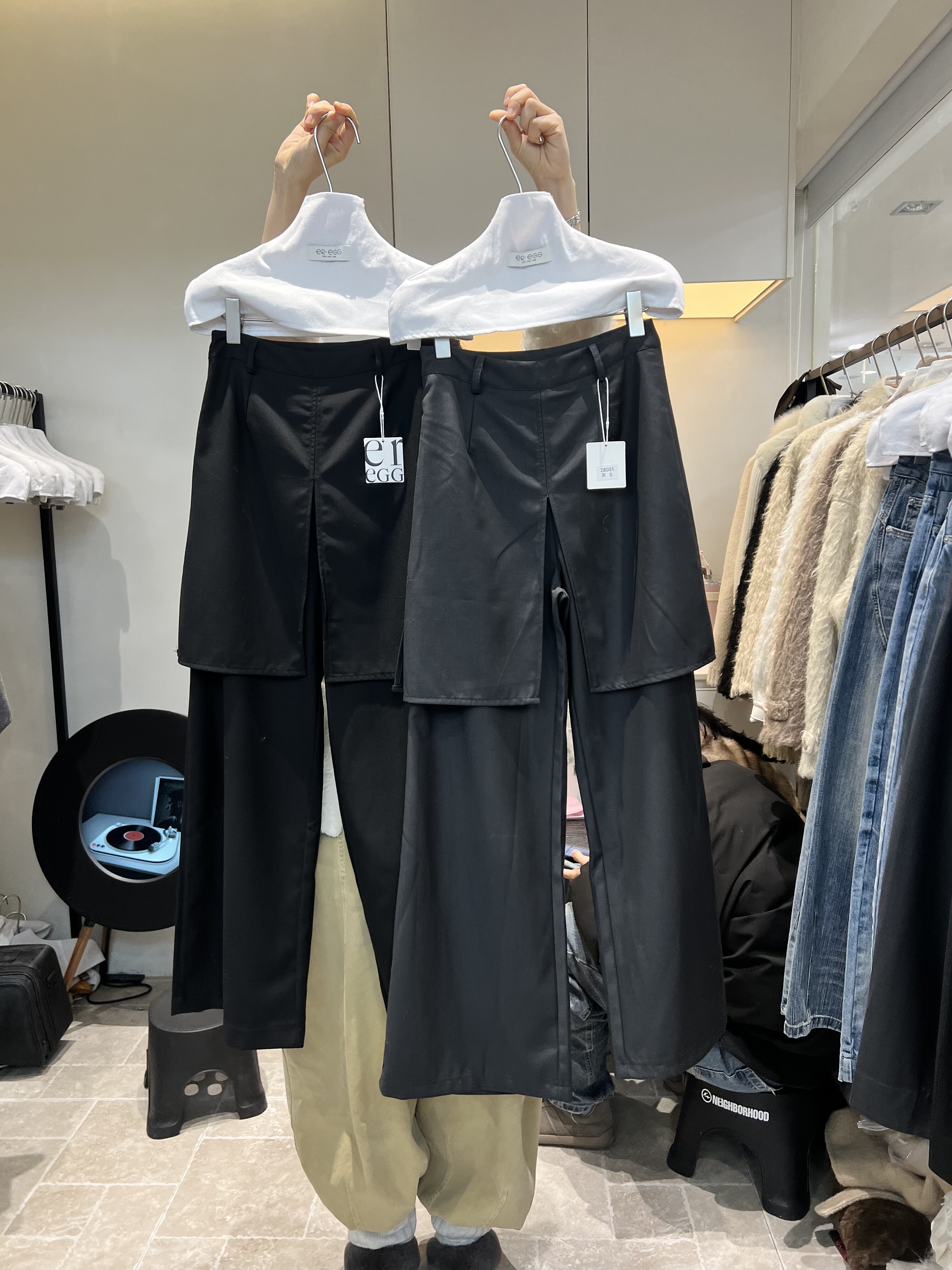 韩国eregg28001春装新款时尚百搭假两件屁帘裤女休闲裤气质西装裤