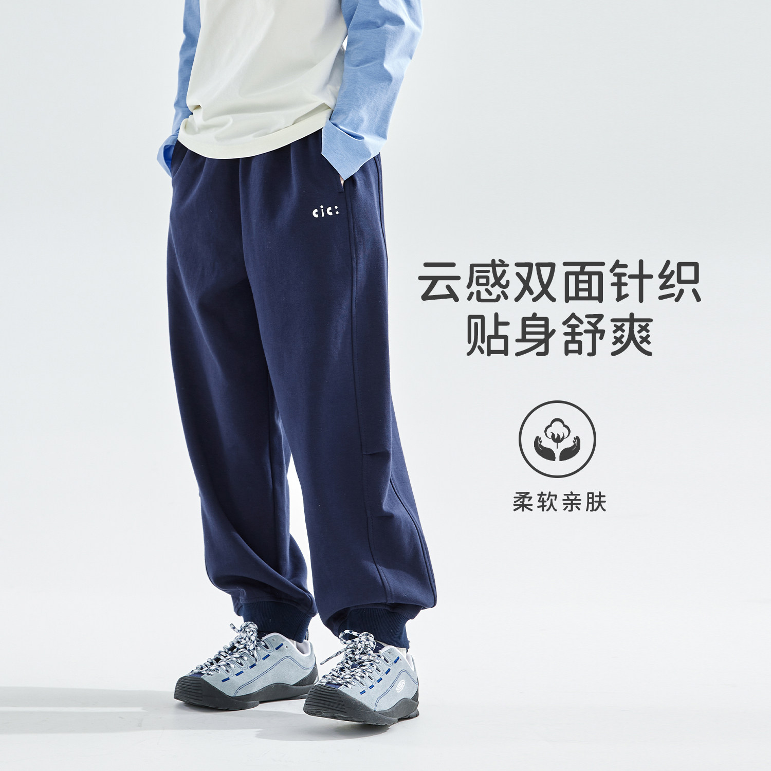 cicochild26年春新款亲子中大女童云感上学裤双面针织束脚运动裤