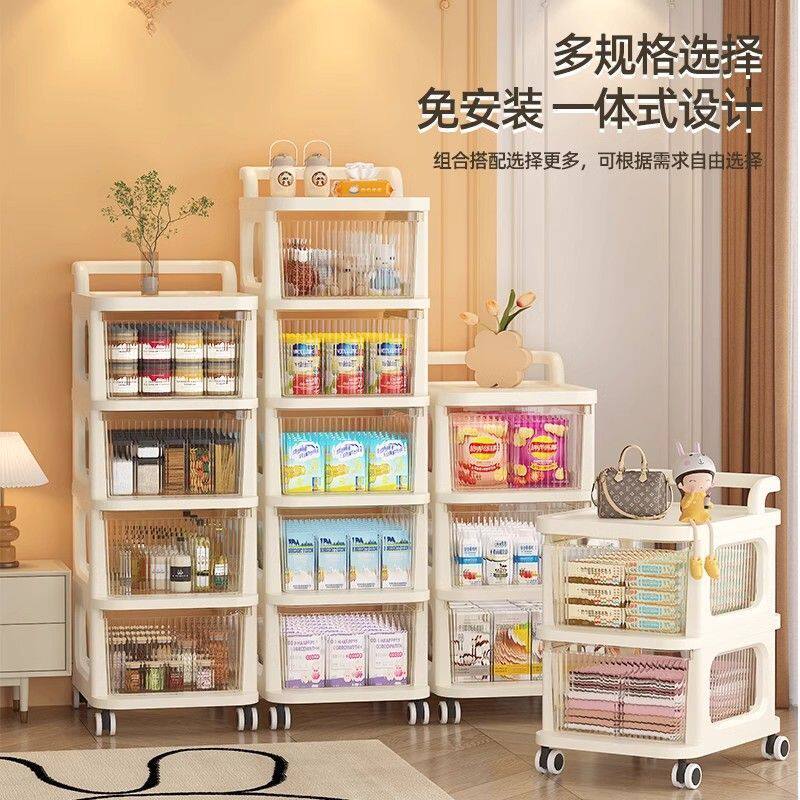 小推车零食奶油风置物架落地可移动宝宝玩具储物架婴儿用品收纳柜