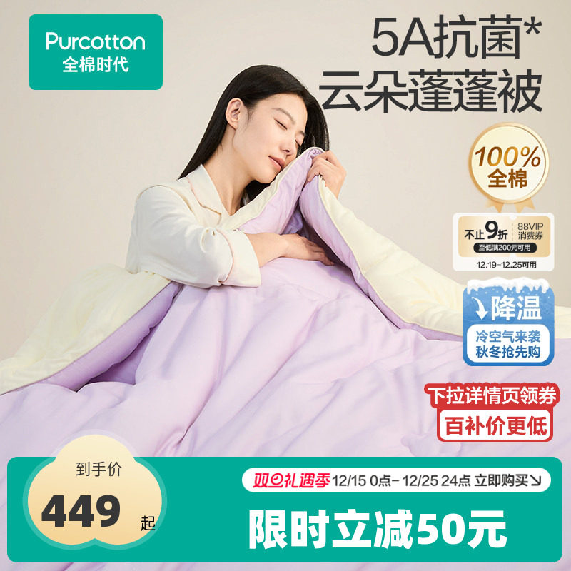 全棉时代被芯100%纯棉全棉棉花被子床品秋冬保暖蓬松亲肤棉芯