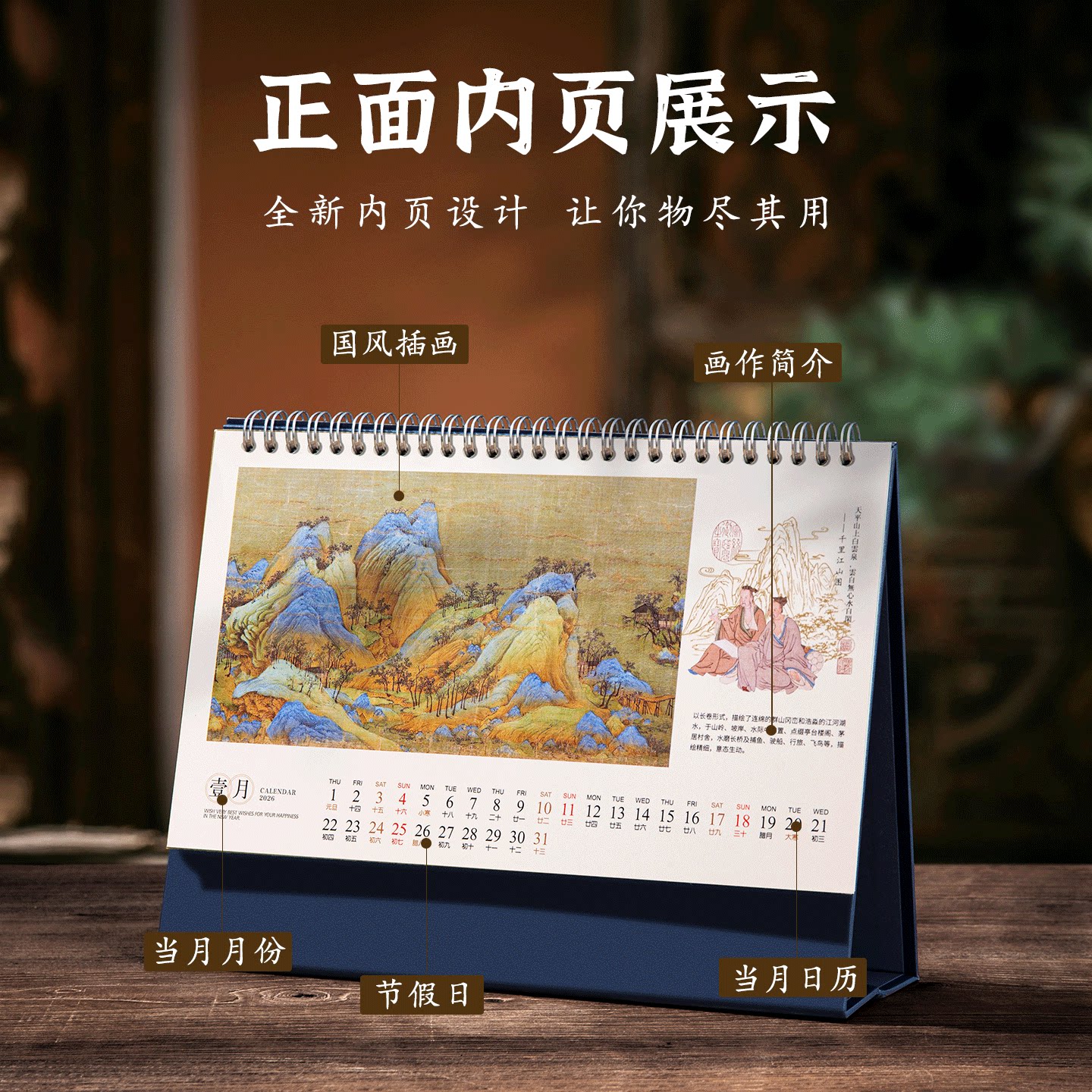 台历2026年新款蓝宝石工艺中国风故宫文创创意精美办公室桌面摆件蛇年月历公司企业定制广告logo文艺日历定做
